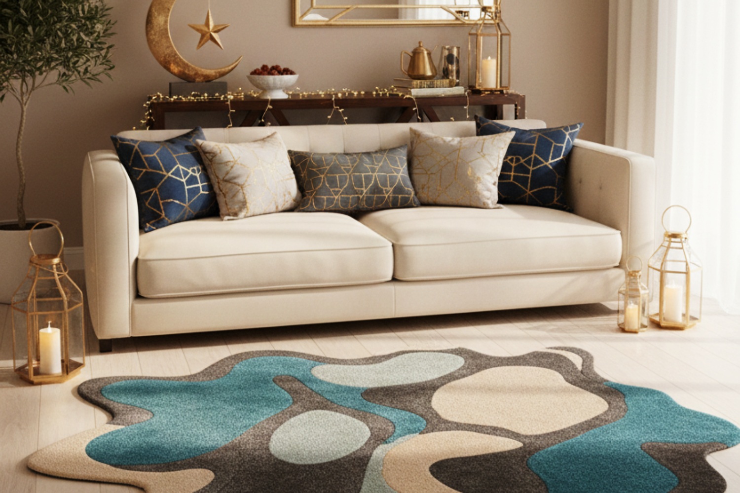 Rugs create the base of every room and strongly influence how the space feels during Eid. A well-placed rug helps define seating areas and makes rooms feel organized. Large rugs work well in living rooms where families gather for long conversations. Medium-sized rugs fit dining areas, bedrooms, and prayer corners.