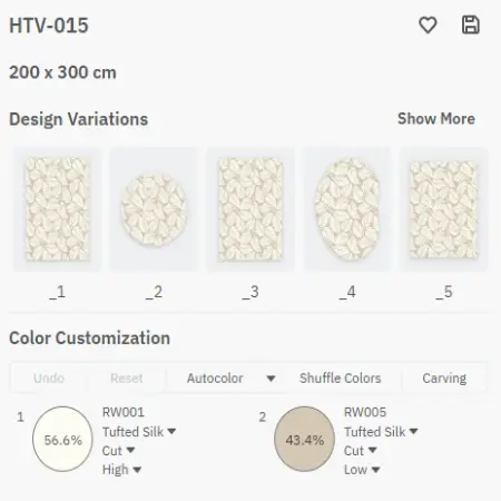 هل سئمت من الاكتفاء بسجادة لا تتناسب تمامًا مع أسلوبك أو ديكور منزلك؟ مع خيارات السجاد القابلة للتخصيص لدينا، يمكنك تصميم الأرضية المثالية لمساحتك. بفضل حلول السجاد المصممة حسب الطلب، يمكنك تحويل رؤيتك الإبداعية إلى واقع ببضع نقرات فقط. يتيح برنامجنا سهل الاستخدام لأي شخص—سواء كان مالك منزل أو مصممًا أو حالماً—التجربة مع الأنماط والملمس والألوان حتى يتم ابتكار التصميم المثالي. اختر أي ألوان وأنماط وملمس لإنشاء سجادة فريدة تخصك وحدك. بعد ذلك، نقوم بتحويل رؤيتك إلى حقيقة باستخدام مواد مخصصة وحرفية متميزة. يمكنك أيضًا تصور السجادة في الغرف المختلفة. الآن السجادة جاهزة لتشعر بأنها شخصية وفريدة وخالدة، لأنها صممت من قبل الشخص الذي يعرف مساحتك أفضل—أنت.