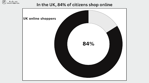 - In the UK, 84% of citizens shop online, making it one of the most digitally mature ecommerce markets globally.