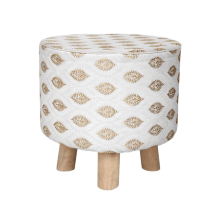White & Gold Color Home Decorative Round Pouf – PF 010 (40x40x40cm)