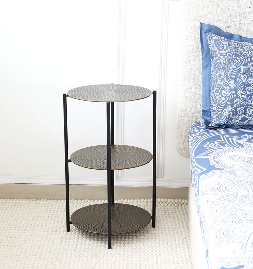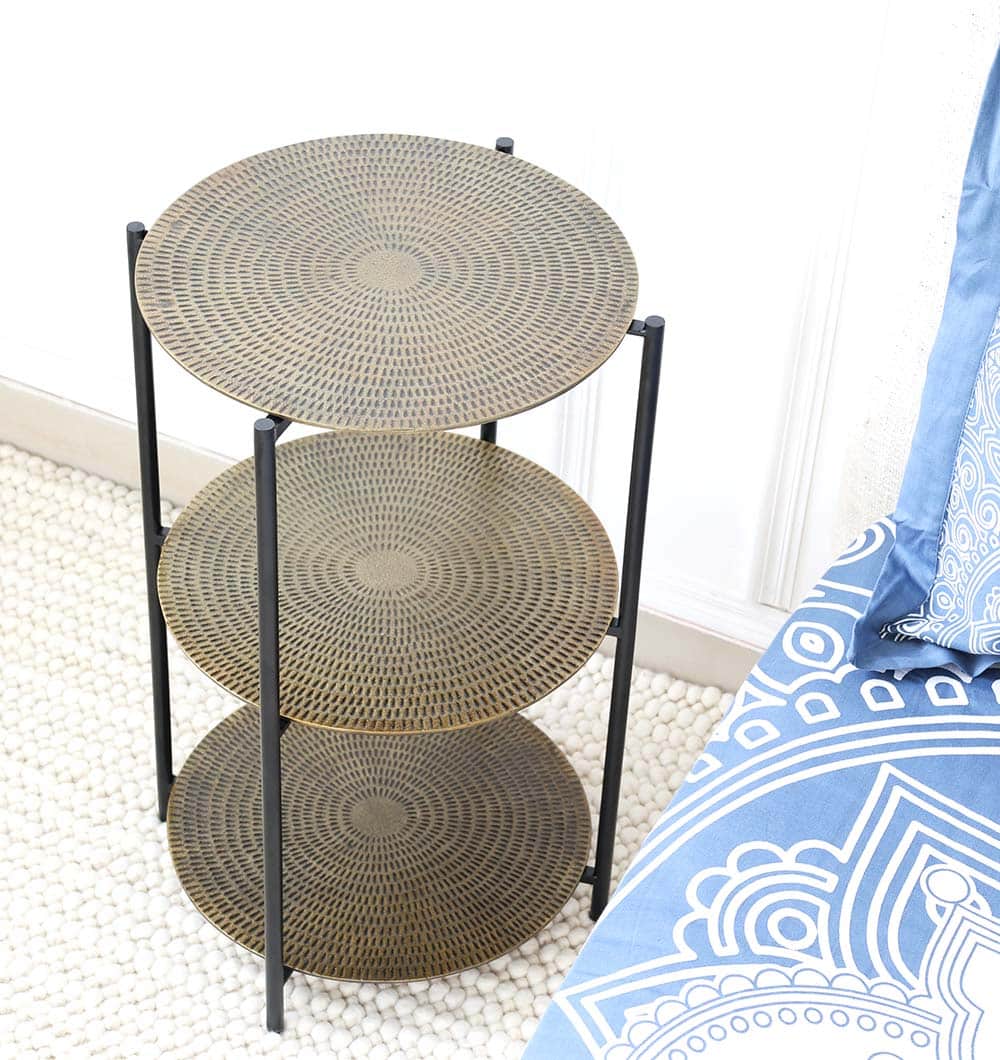 489السعر الحالي هو: 489. 3-Tier Round Side Tables – Antique Brass Finish with Black Iron Base GH-075
