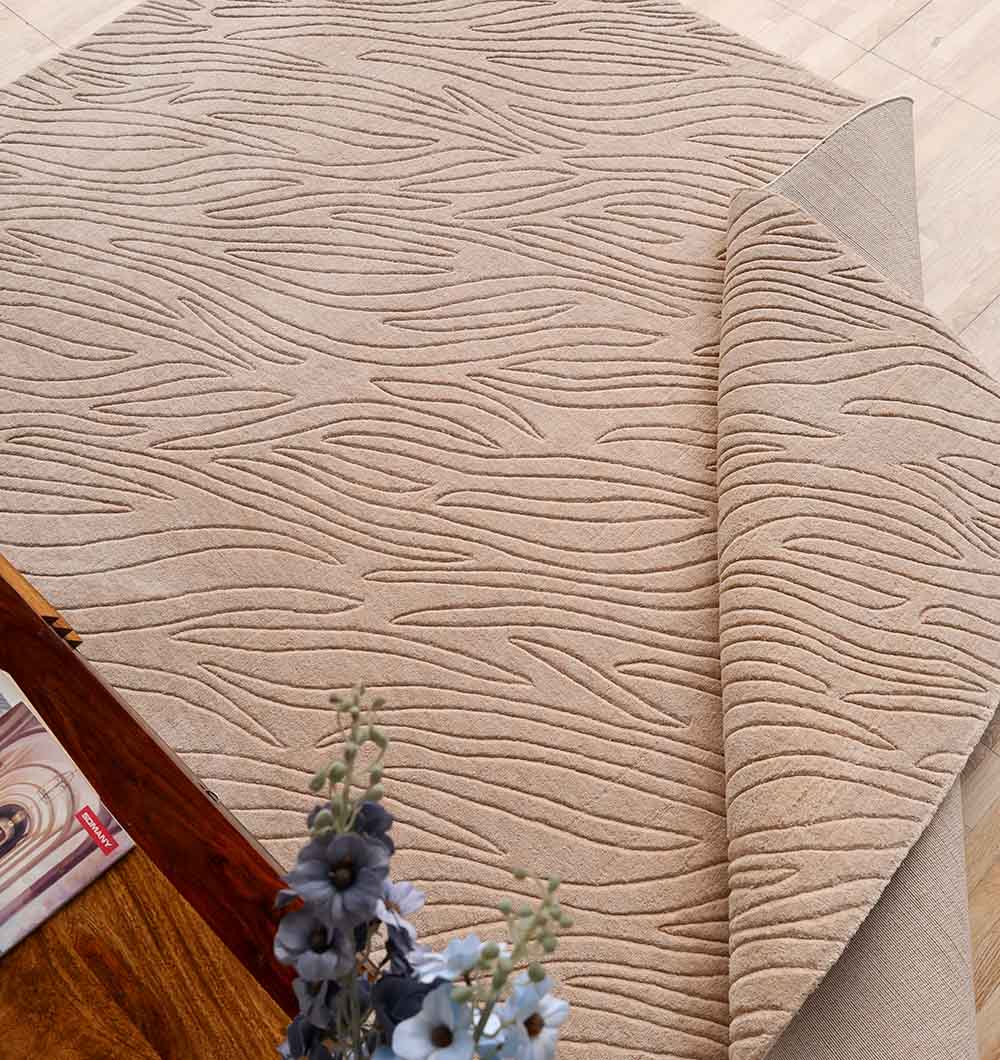 The LKH-042 is a premium selection for those seeking high-quality bedroom carpets that combine understated luxury with artisanal durability. Measuring 200 x 300 cm, this rectangular rug is meticulously handcrafted from a high-performance blend of 80% polyester and 20% cotton, resulting in a substantial 30 kg weight that ensures it stays perfectly in place. The design features a serene beige palette elevated by a hand-carved linear texture, adding a sophisticated architectural touch to its minimalist surface. With a plush 1.5 cm pile height, it provides the exceptional underfoot softness and acoustic dampening required for restful sleeping environments. This durable yet elegant piece represents the pinnacle of modern craftsmanship for anyone looking to invest in long-lasting, stylish bedroom carpets.