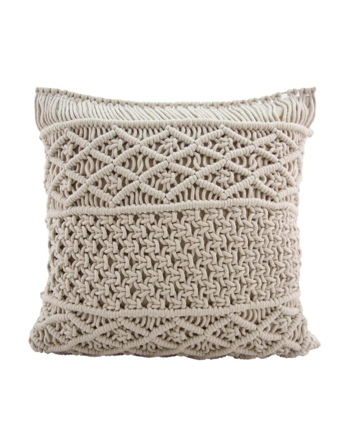 Natural White Color Cotton & Polyester Macrame Cushion – CS 169 (60x60cm)