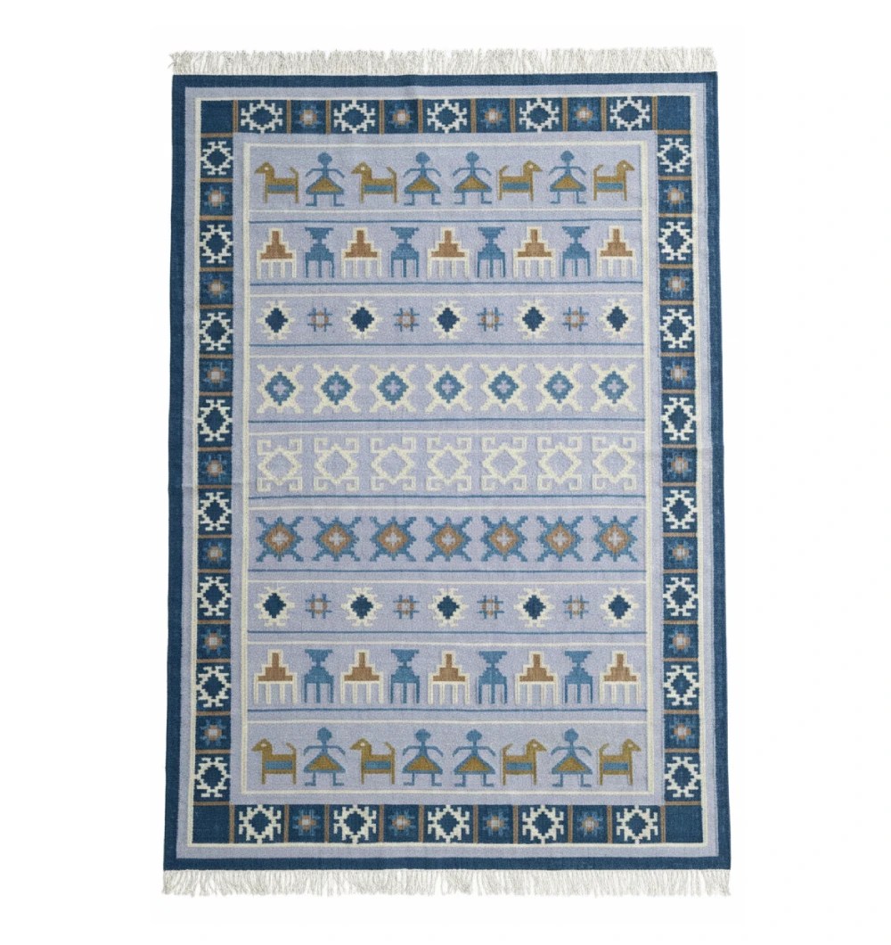 Imagine finding a piece rich with heritage and charm?that’s the experience of owning the KLM-018 Blue Wool Kilim rug. The deep Indigo Blue background sets a dramatic stage for its truly unique folk art animal and anthropomorphic motifs. Every figure seems to tell a small story, making this rug a vibrant, one-of-a-kind conversation starter. As an authentic handwoven flatweave, this rug delivers both beauty and comfort. We chose a premium blend of 80% Wool and 20% Cotton because it offers natural softness and resilience.