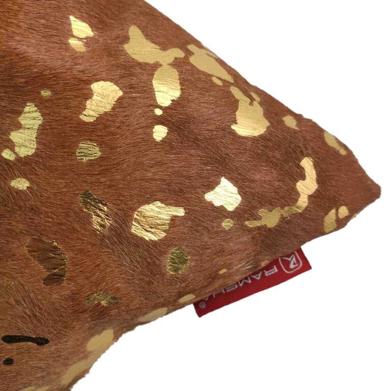 Tan & Gold Color Handmade Leather Cushion with Filler – CS 092 (45x45cm)