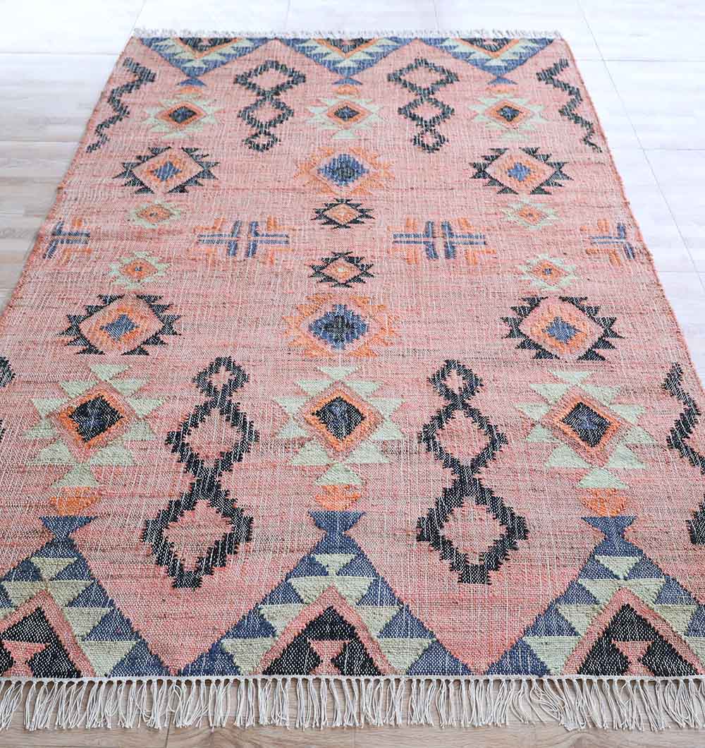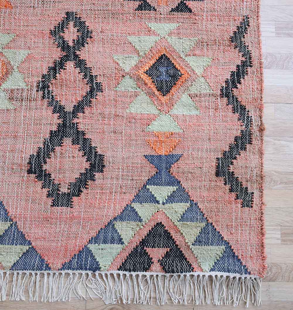 Add a warm, textural touch with this Pink Aztec Kilim flatweave (KLM-005). Handwoven from 80% Jute/20% Cotton, this Southwestern-inspired rug instantly brightens any room. Perfect for modern interiors, this 170×240 cm rug enhances living rooms, bedrooms, and lounge spaces effortlessly.