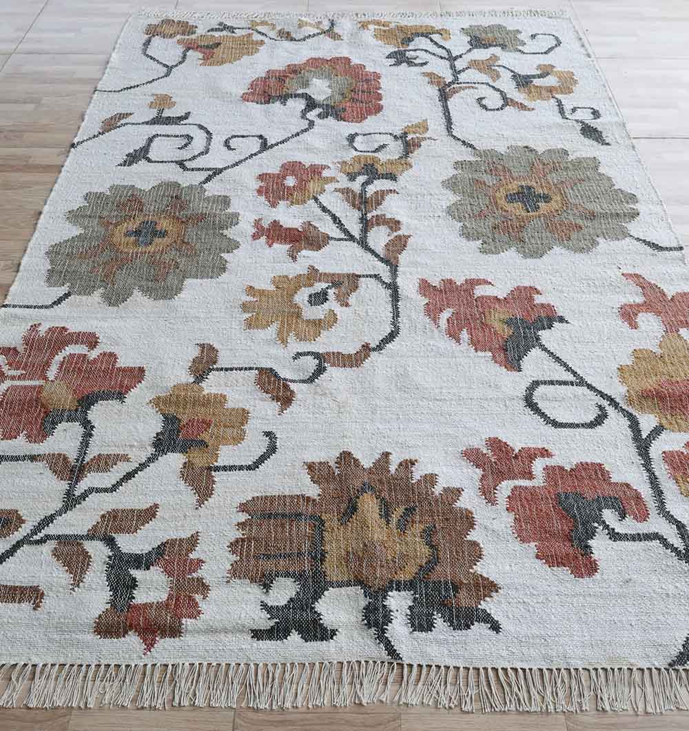 When your room demands a centerpiece, the KLM-021 delivers. This is a magnificent area rug, large enough to anchor a full living room set or dining area with effortless style. The beautiful, sprawling floral and vine motifs create a traditional, elegant tapestry look, adding a rich layer of texture and color to your floor. This is a high-impact piece that is built to last. As a durable handwoven flatweave, it is crafted from a natural blend of 80% Jute and 20% Cotton.