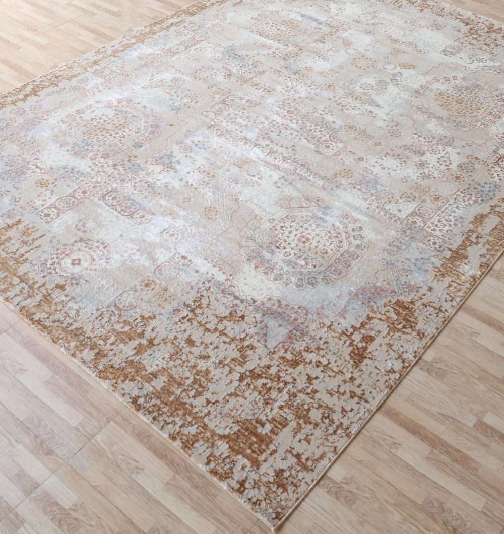 سجادة تركية مستطيلة مصنوعة آليًا باللون الكريمي والذهبي - MZ67C