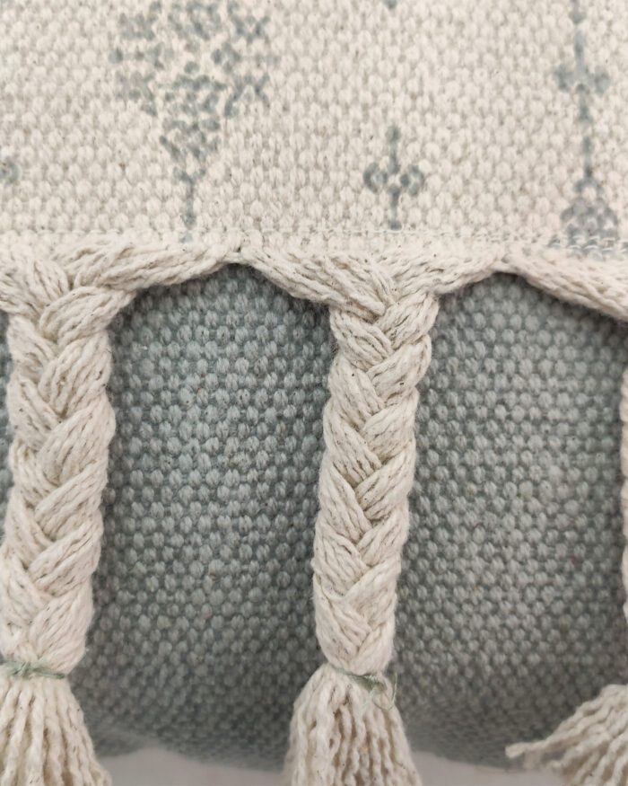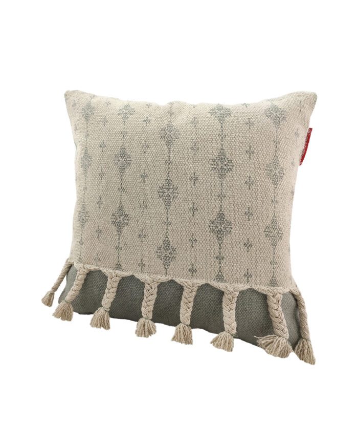 Add a touch of sophistication to your living space with the CS-173 cotton cushion. Measuring 45×45 cm, this cushion features an elegant white and grey color scheme with stylish fringes. Perfect for enhancing your window seat or floor, its soft cotton fabric and plush filler provide both comfort and a refined look. The fringed edges add a subtle decorative element, making it a versatile addition to various decor styles.
