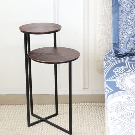 280السعر الحالي هو: 280.Modern Dual-Tier Side Round Table – Copper Antique Finish with Black Iron Base GH-075-C