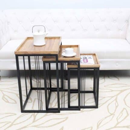 555السعر الحالي هو: 555.Set of 2 Wooden Nesting Side Tables – Solid Wood Tops with Black Iron Base