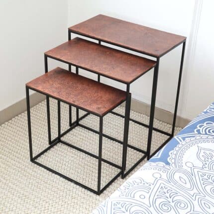Modern Three-Tier Side Tables – Black Powder/Copper Finish with Black Iron Base GH-111-B
