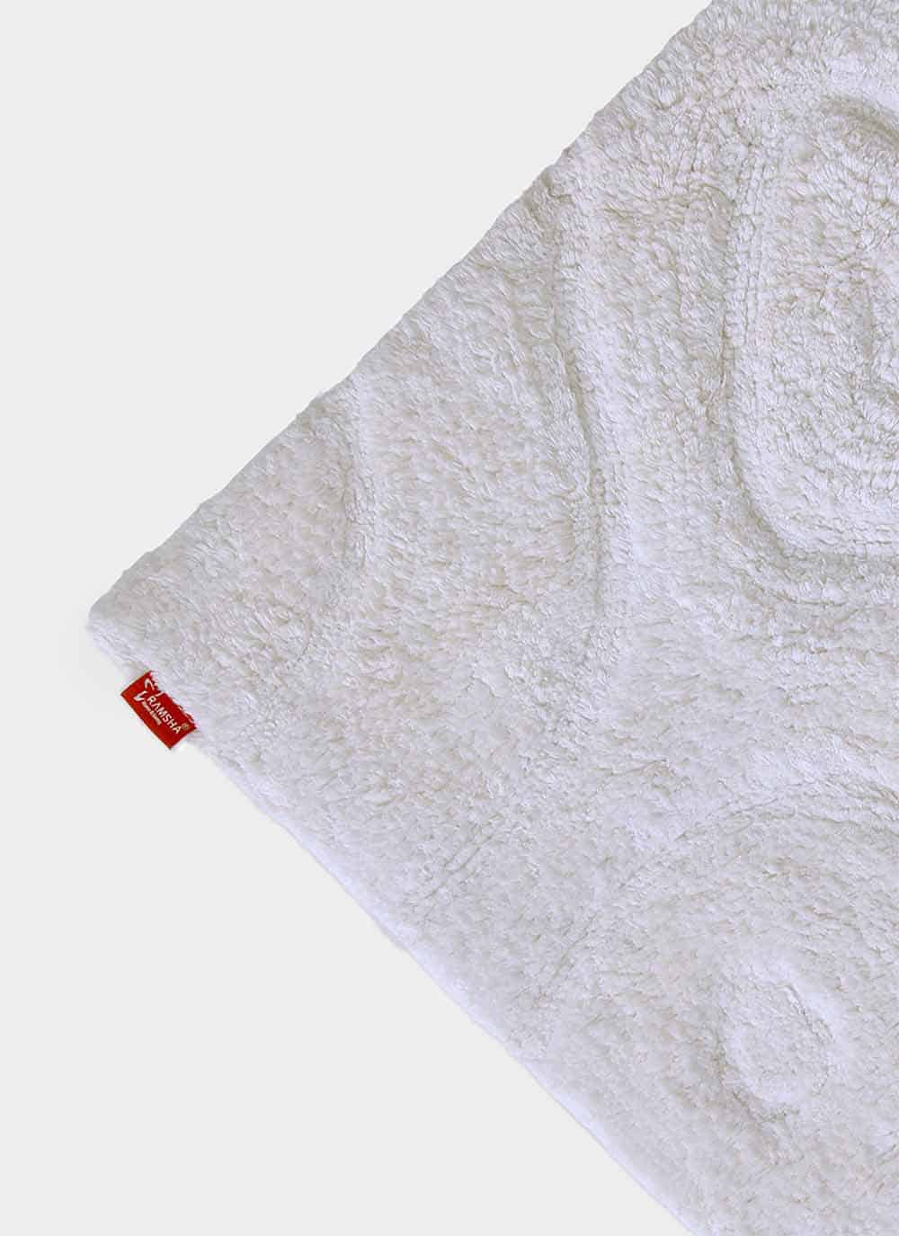 Elevate the comfort and style of your bathroom with the Handmade Bathmat BM-012. It is crafted from fluffy, soft cotton, offering a plush and luxurious feel underfoot. Its absorbent texture ensures quick drying, keeping your bathroom floor dry and clean. The bleach white color adds a touch of purity and elegance to any bathroom decor, enhancing its aesthetic appeal. Featuring a non-slip backing, it provides enhanced safety and stability, making it a perfect choice for households seeking both beauty and practicality. Indulge in the ultimate comfort and sophistication with this beautifully crafted bathmat.