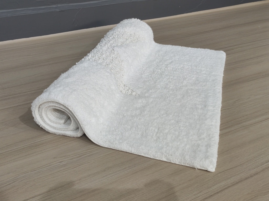 48السعر الحالي هو: 48. Bleach White Non-Slip Fluffy Soft Cotton Bathmat – BT 008 (60x90cm)