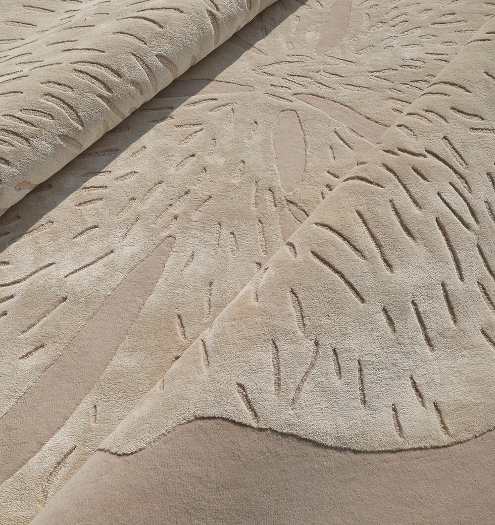 Soft and sculpted, this taupe and ivory rug features a bold flower design with carved texture that you can see and feel. The mix of wool, viscose, and cotton gives a cozy touch with a gentle sheen, making it easy to style with light woods, warm neutrals, or clean modern furniture. Use this floral area rug to add a calm focal point without loud color, or let it soften a sleek space as a modern floral rug. A neutral handtufted rug like this works beautifully under a coffee table, beside the bed, or in a dining space where you want comfort with a polished look.
