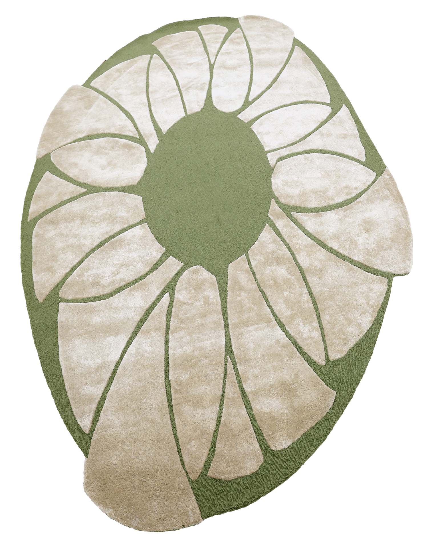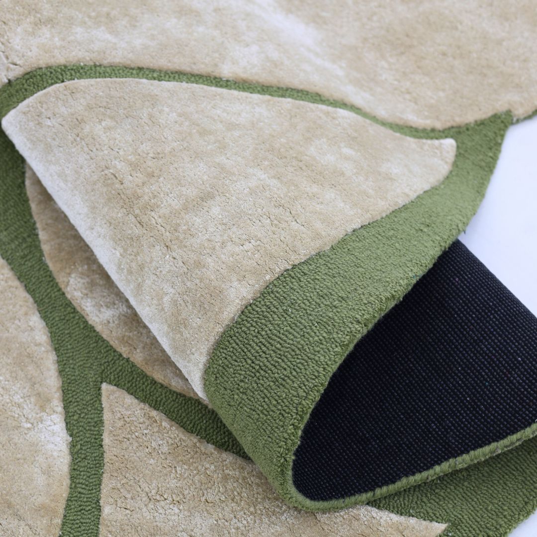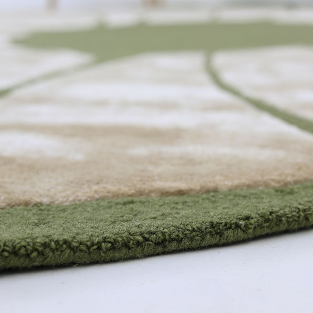 Fresh olive green sets the background for this irregular rug, with large cream petal shapes that create a bold floral look without tiny details. The hand-tufted pile feels soft and easy to walk on, and the polyester with cotton blend is practical for regular use and simple care. Use it as a hand tufted rug to add a playful focal point, choose it as a green floral rug to bring color into neutral rooms, or style it as an irregular shape rug to soften sharp furniture lines.