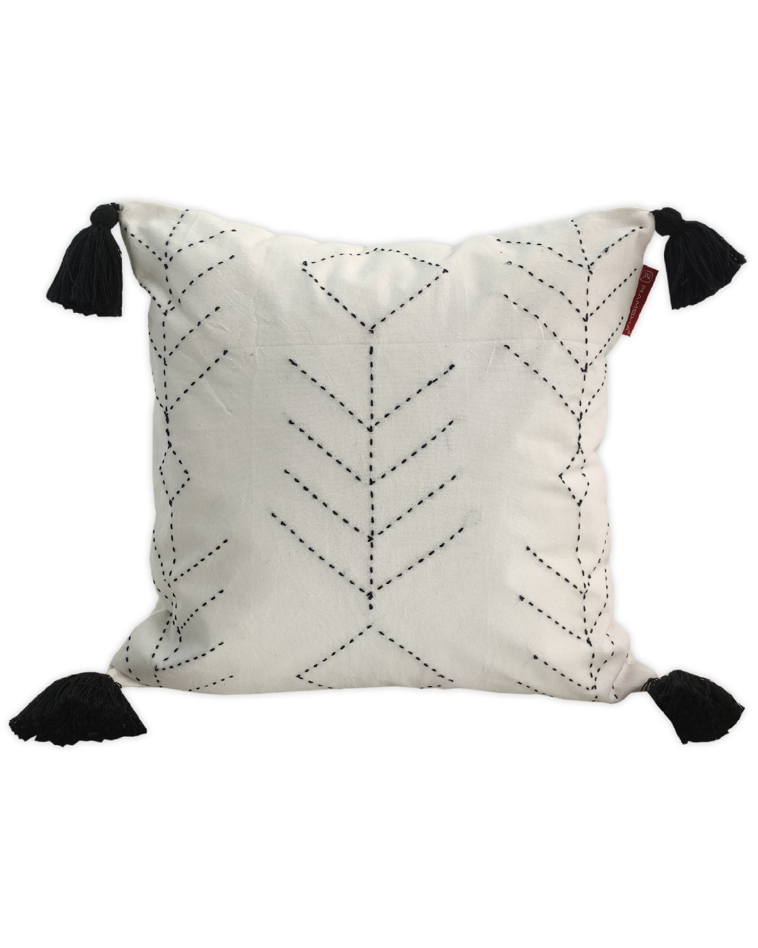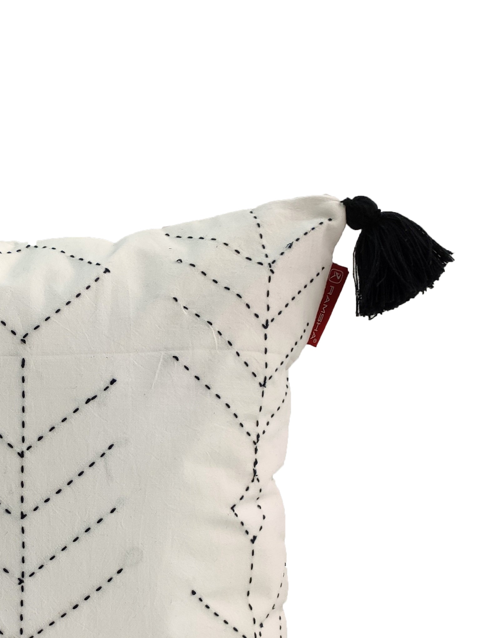 Embroidery White And Black Cotton Cushion With Tassel CS-191