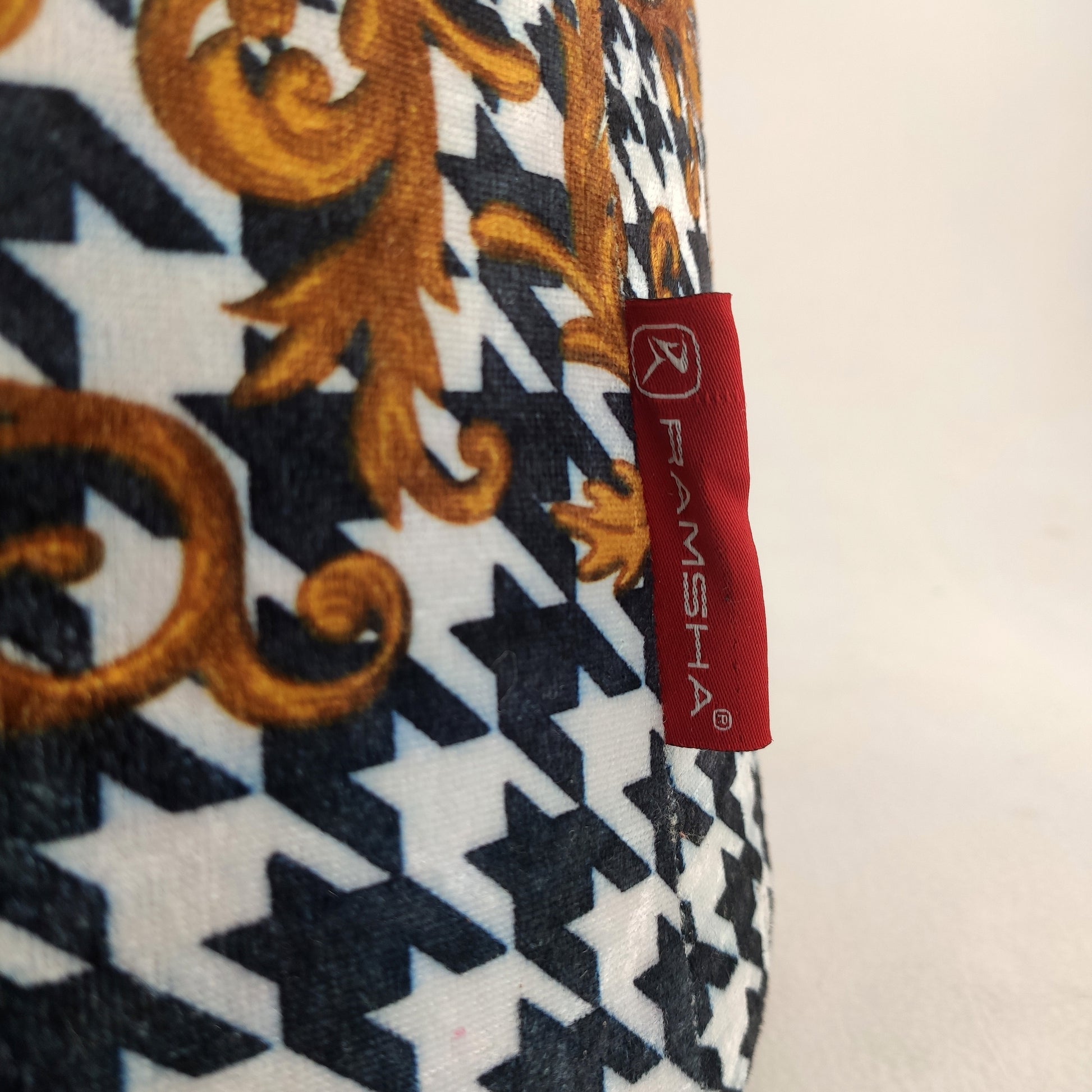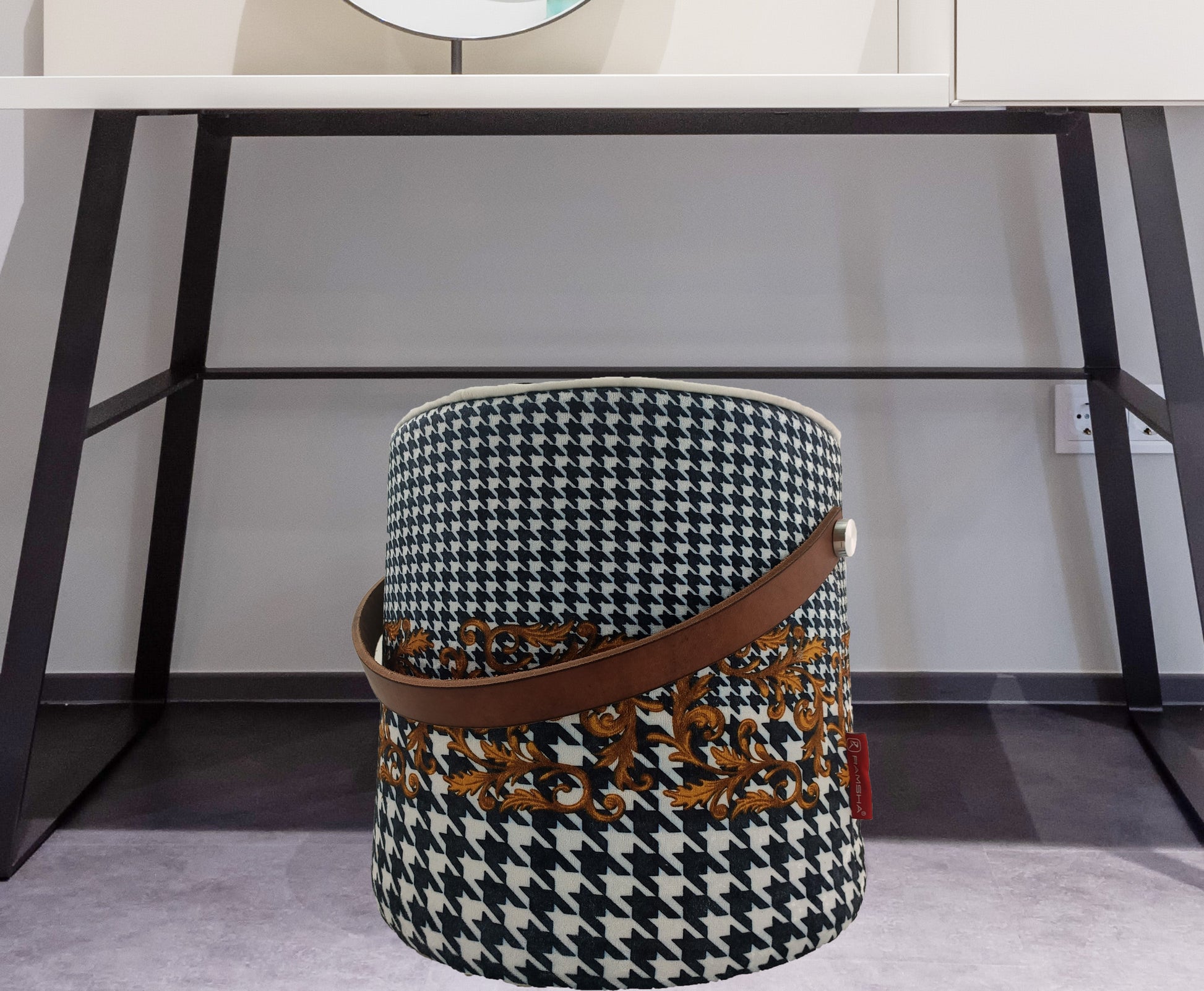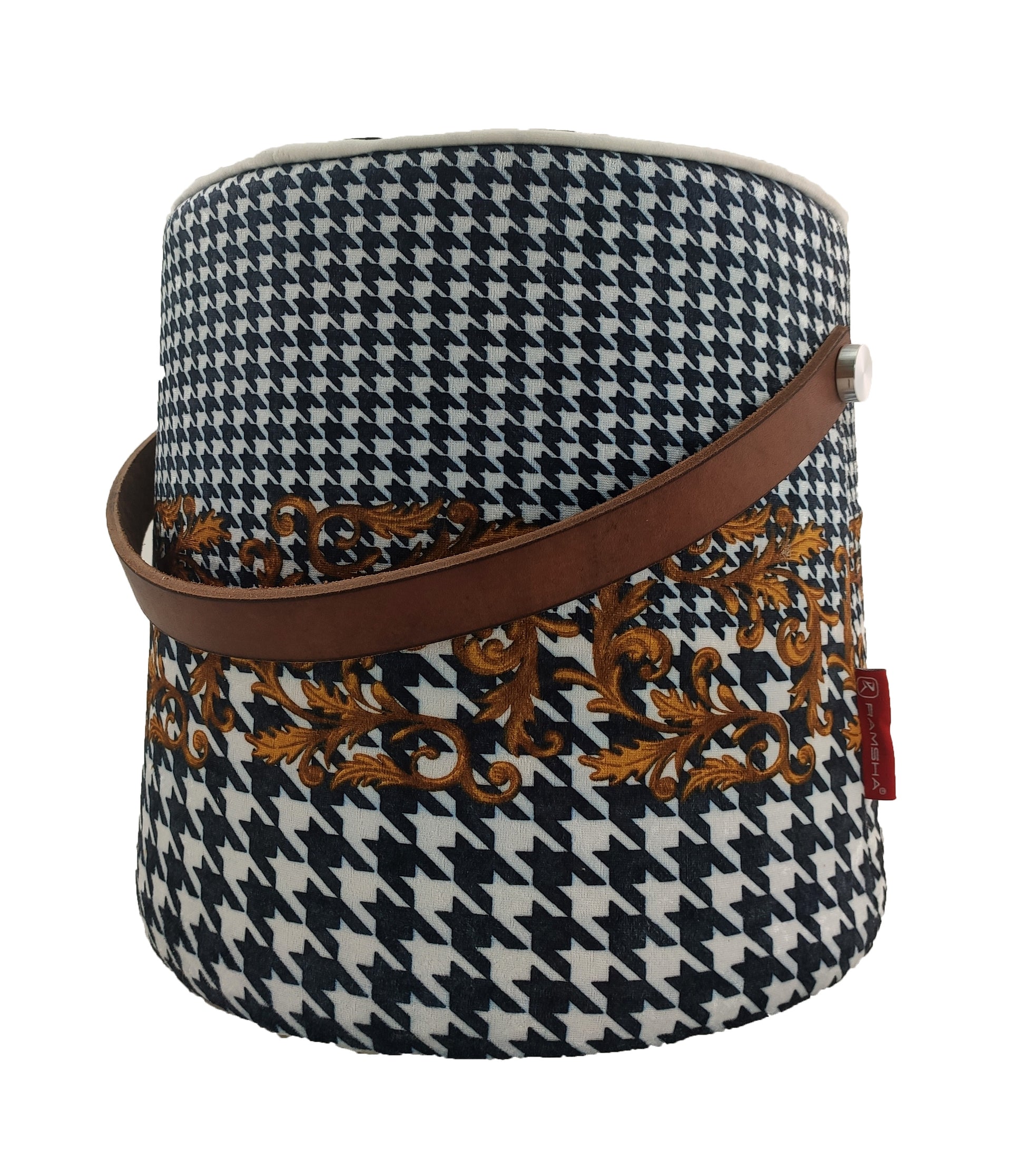 Leather Printed Pedestal Pouf With Leather Handle PF-025