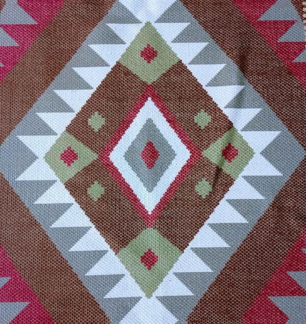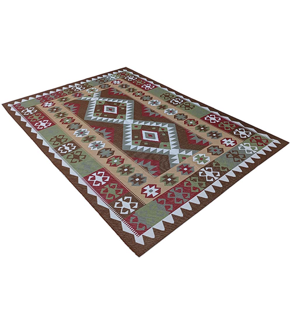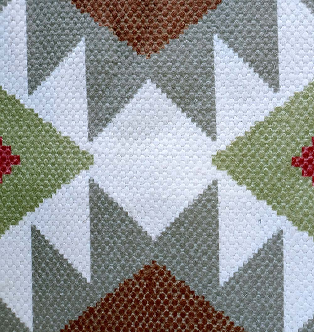 Bring a warm, handmade-look touch to your floor with this tribal dhurry rug in earthy brown, olive green, beige, red, and white. The bold diamond center and border motifs give it a classic kilim feel, while the digital print keeps the details sharp and clean. Use this green and red rug to add color to neutral rooms or pair it with wood and leather for a cozy, rustic vibe. The flat, easy-to-place design works well under furniture and helps define your seating area. If you love pattern without heavy texture, this geometric printed rug is a great pick.
