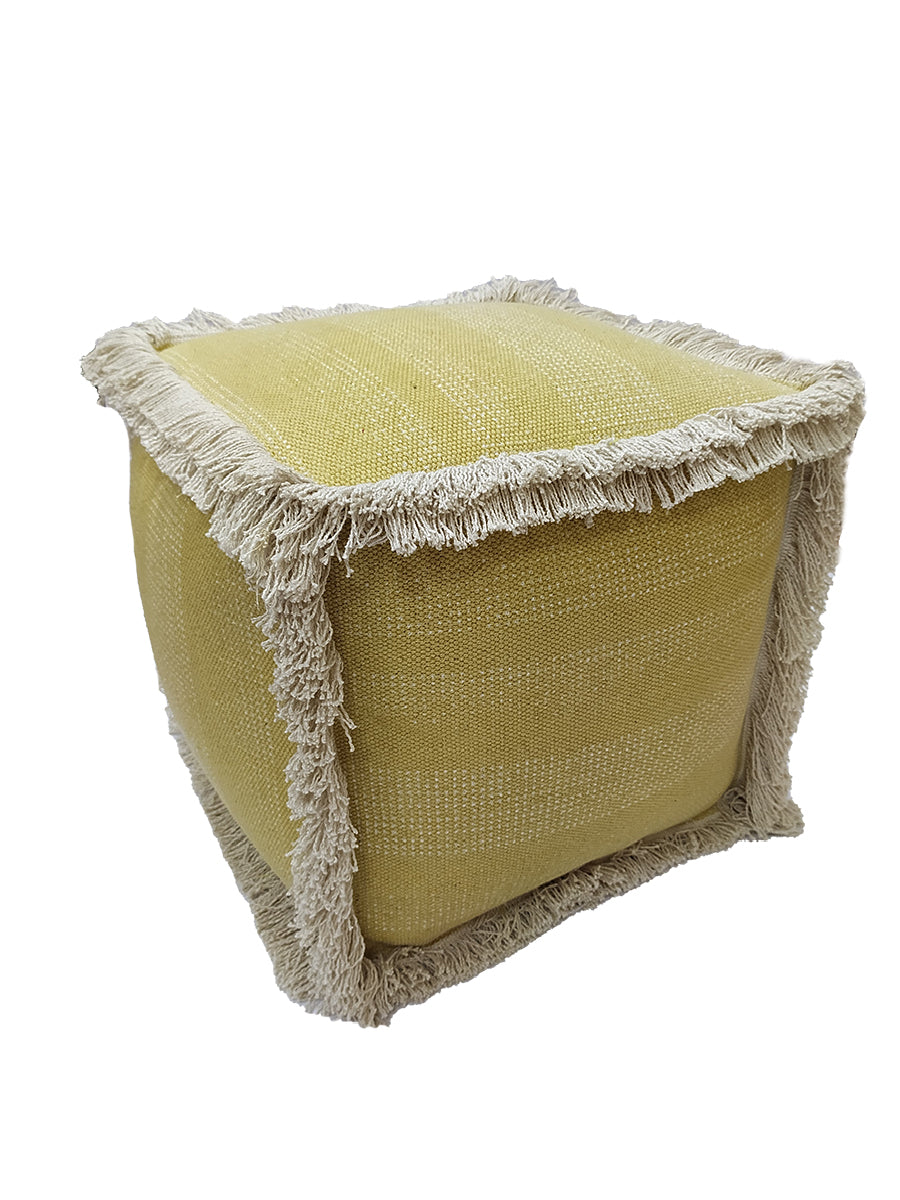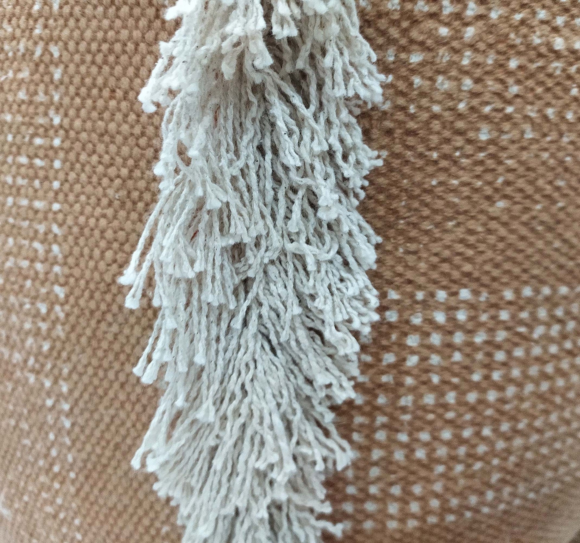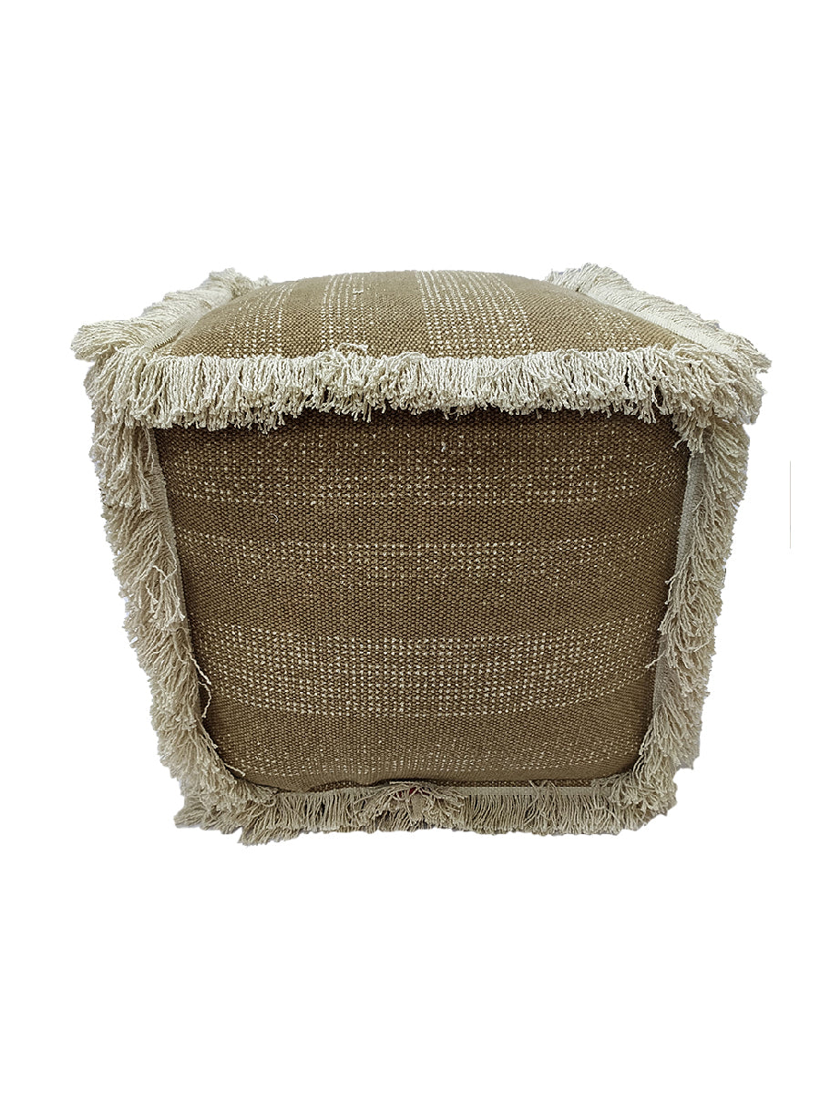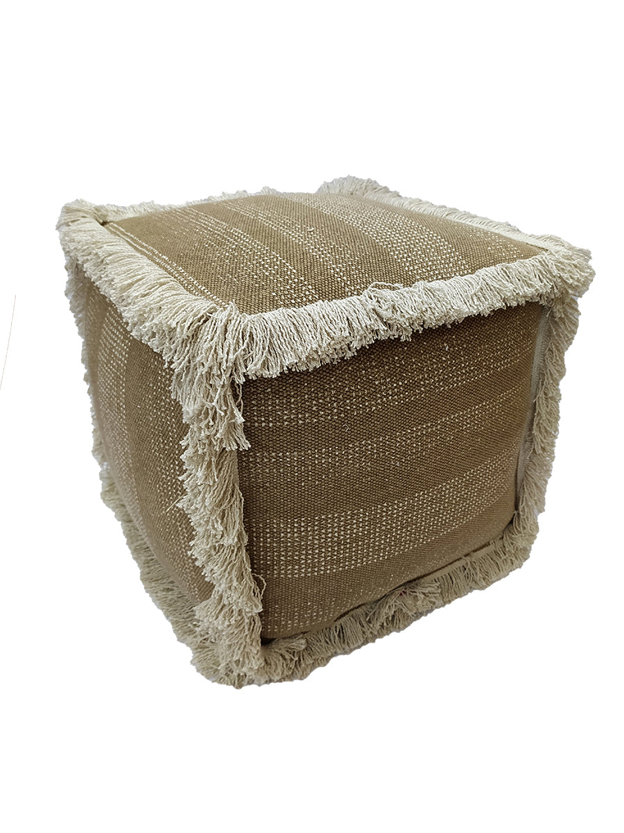 This pouf provides a stylish and comfortable seating solution. It is crafted from black cotton material and features a luxe leather handle for easy portability. Perfect for any room in the home, this pouf is both fashionable and functional.