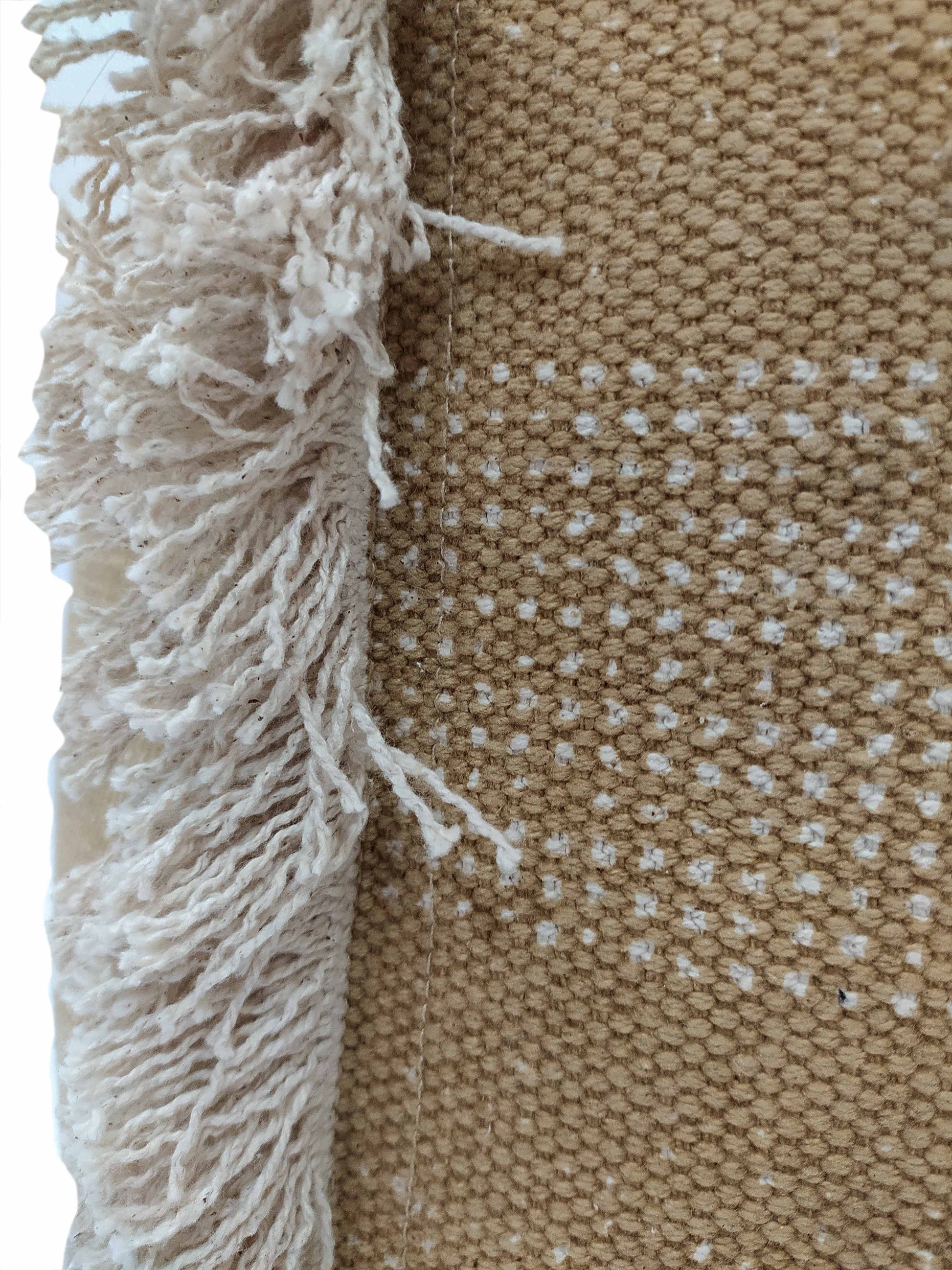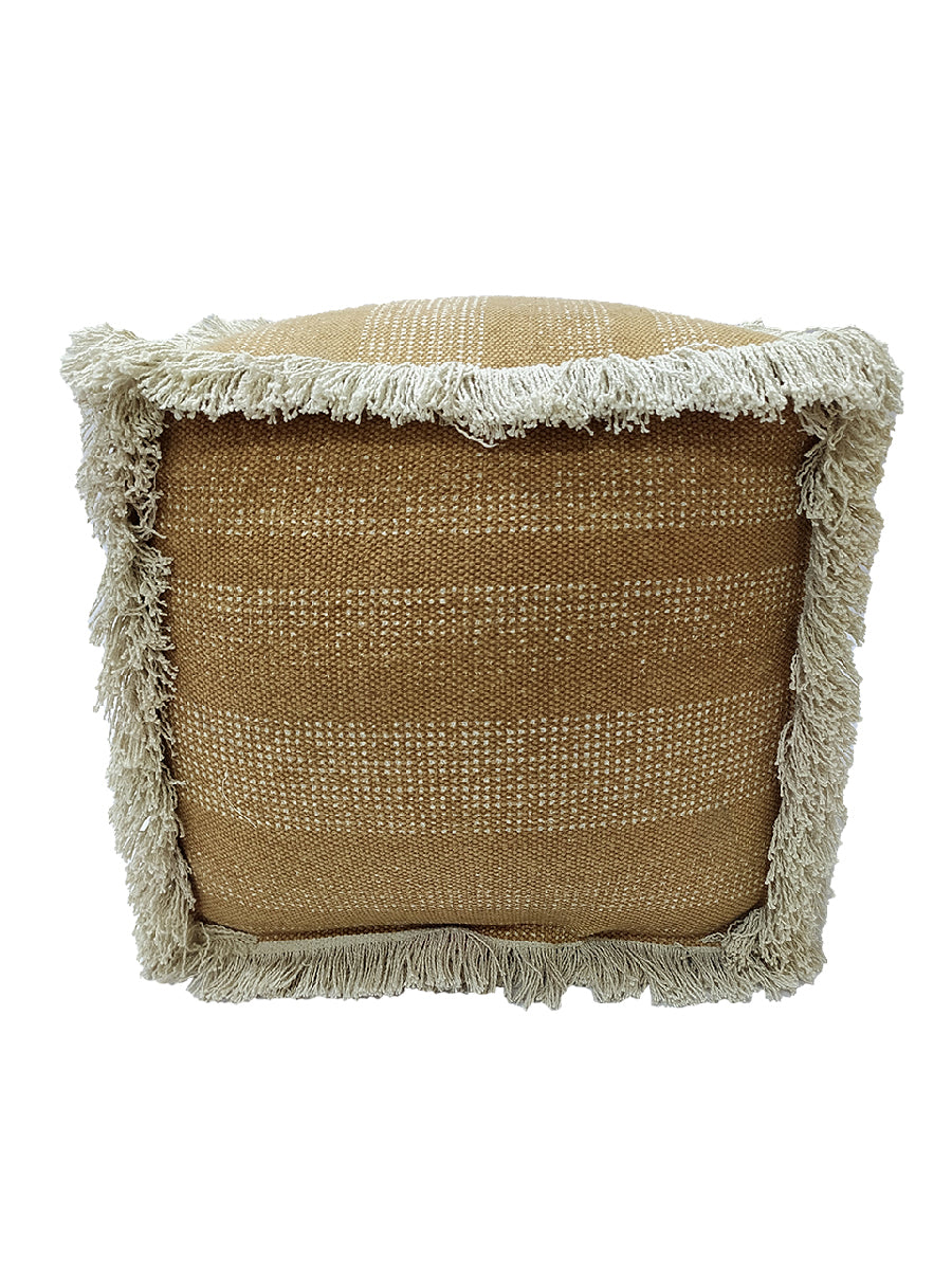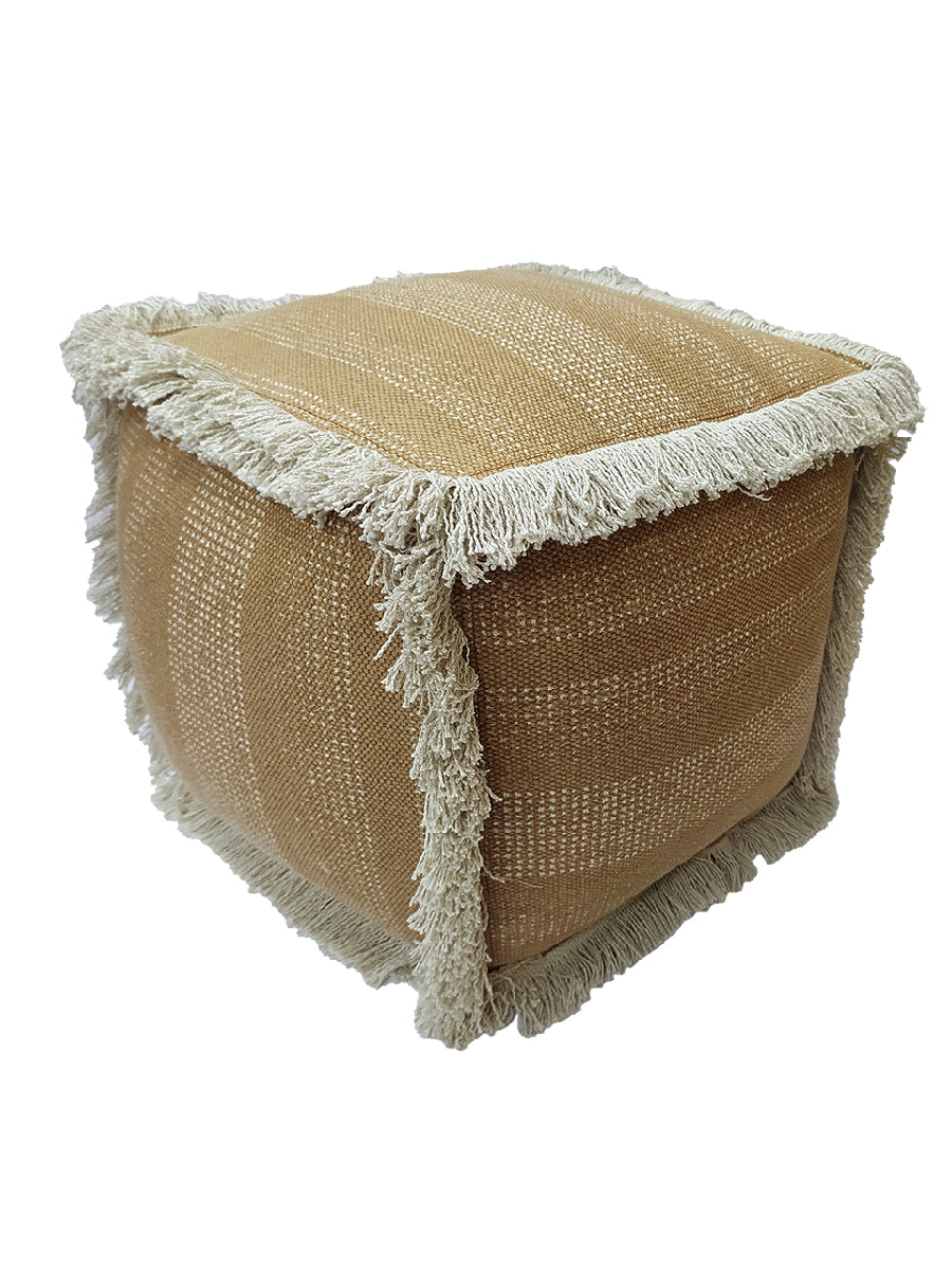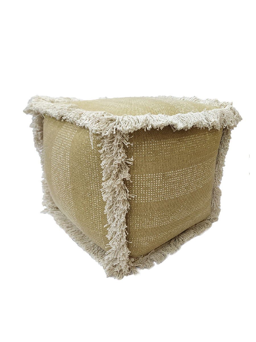 This pouf provides a stylish and comfortable seating solution. It is crafted from black cotton material and features a luxe leather handle for easy portability. Perfect for any room in the home, this pouf is both fashionable and functional.