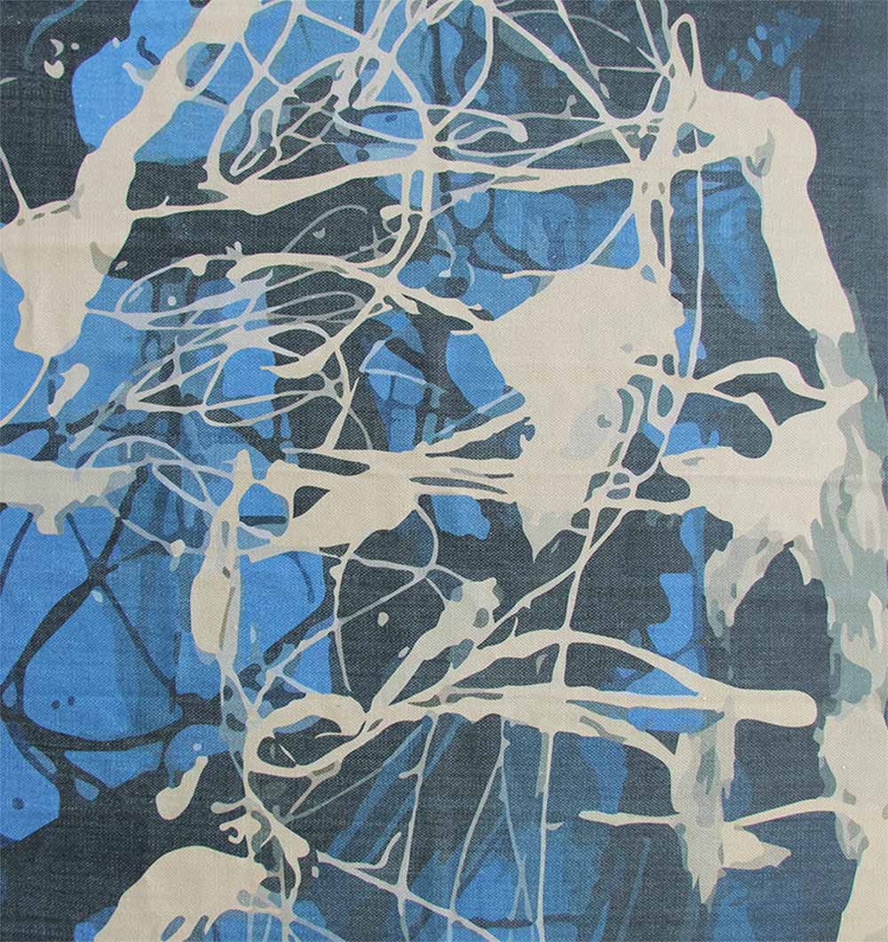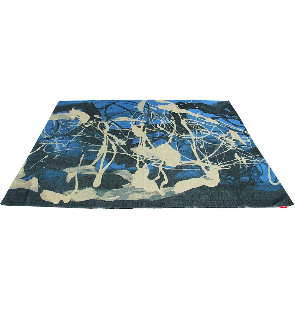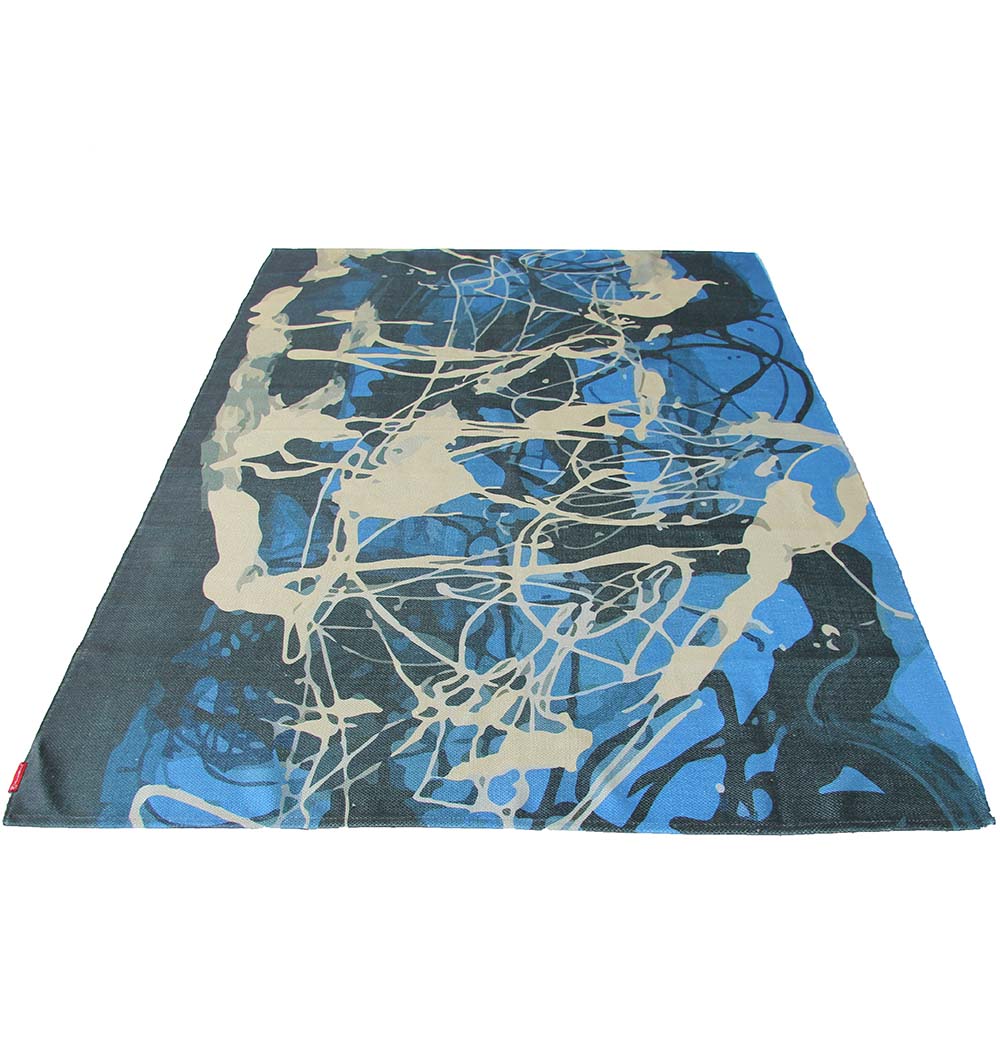 Make a bold statement with this blue abstract rug in layered navy, cobalt, and soft ivory. The energetic paint-splash look brings an art-studio vibe to your floor while staying easy to style with neutrals, denim tones, and modern furniture. This digital printed dhurry has a smooth, flat feel that works well in busy spaces and under seating. Use it as a standout modern area rug to add color, depth, and movement without overpowering the room.