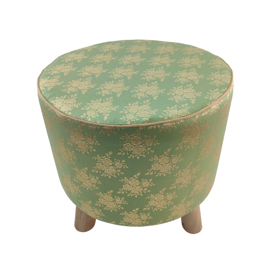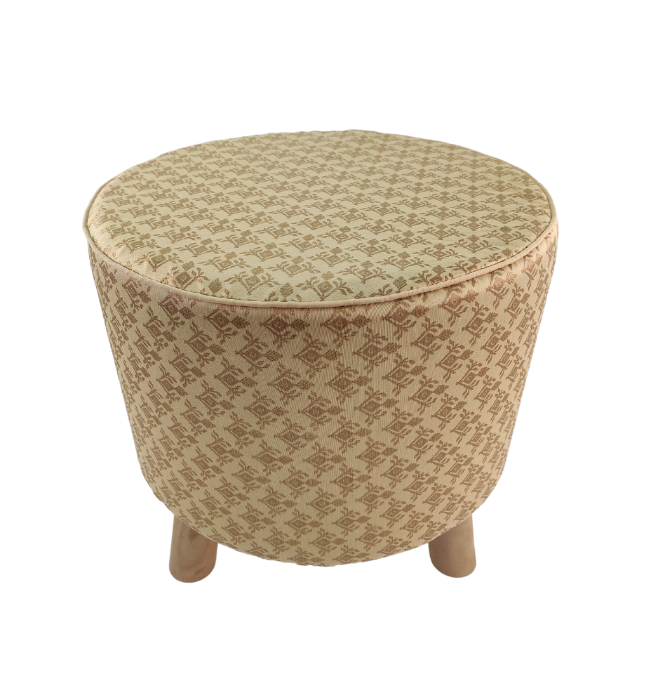 Polyester Stool Pouf With Wood Base