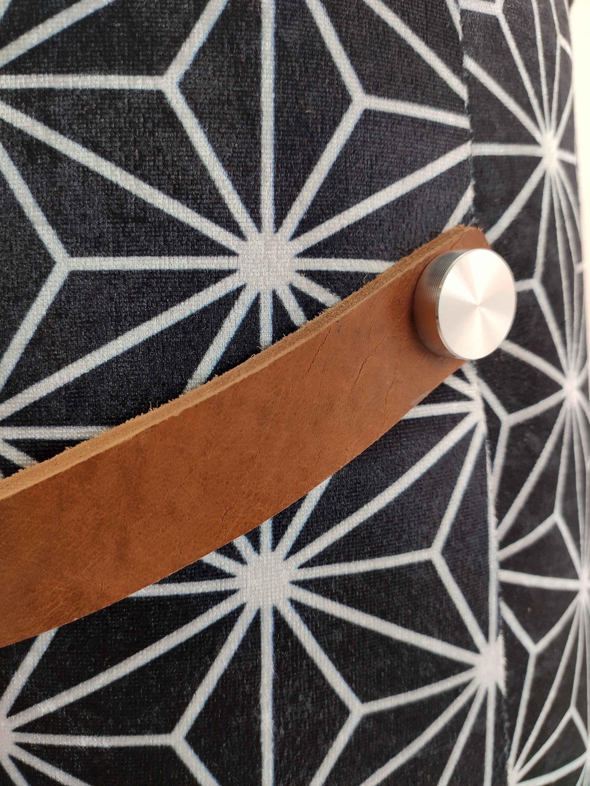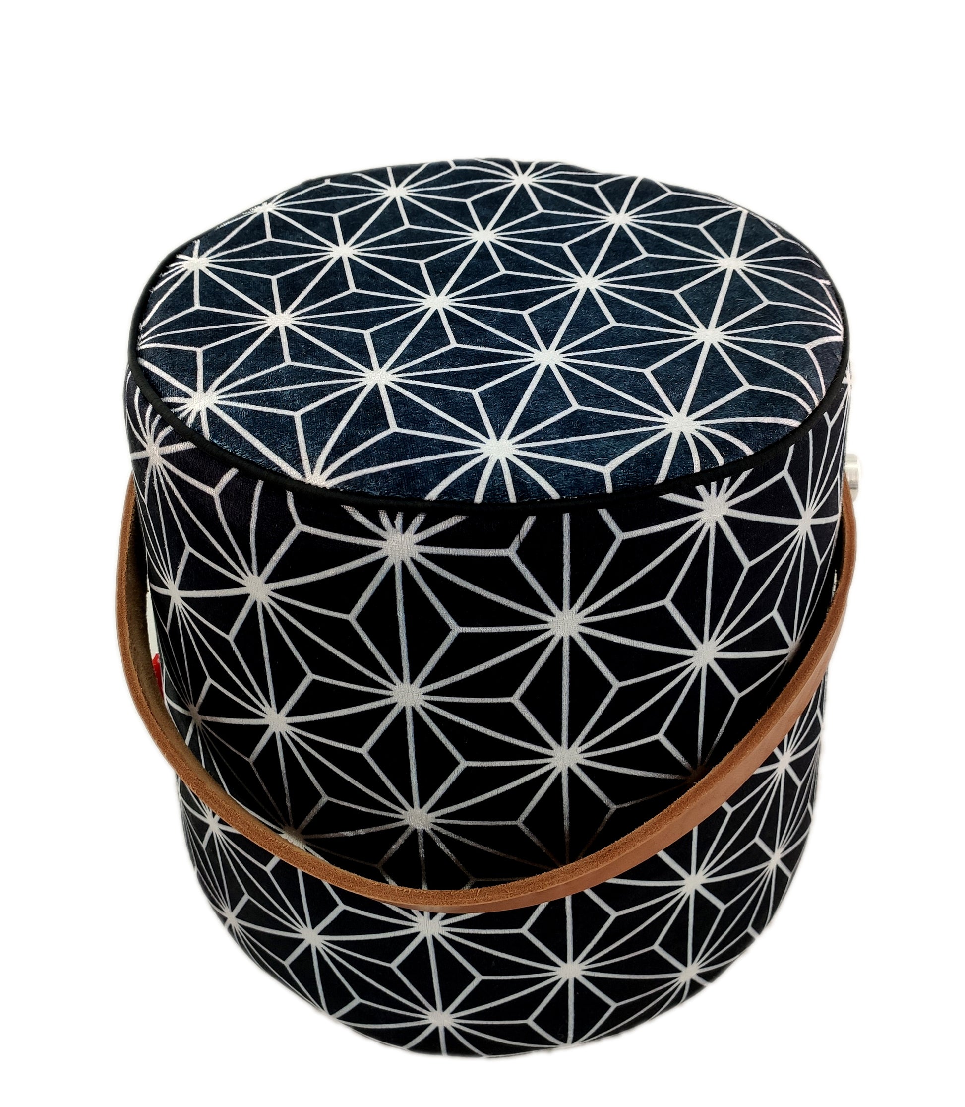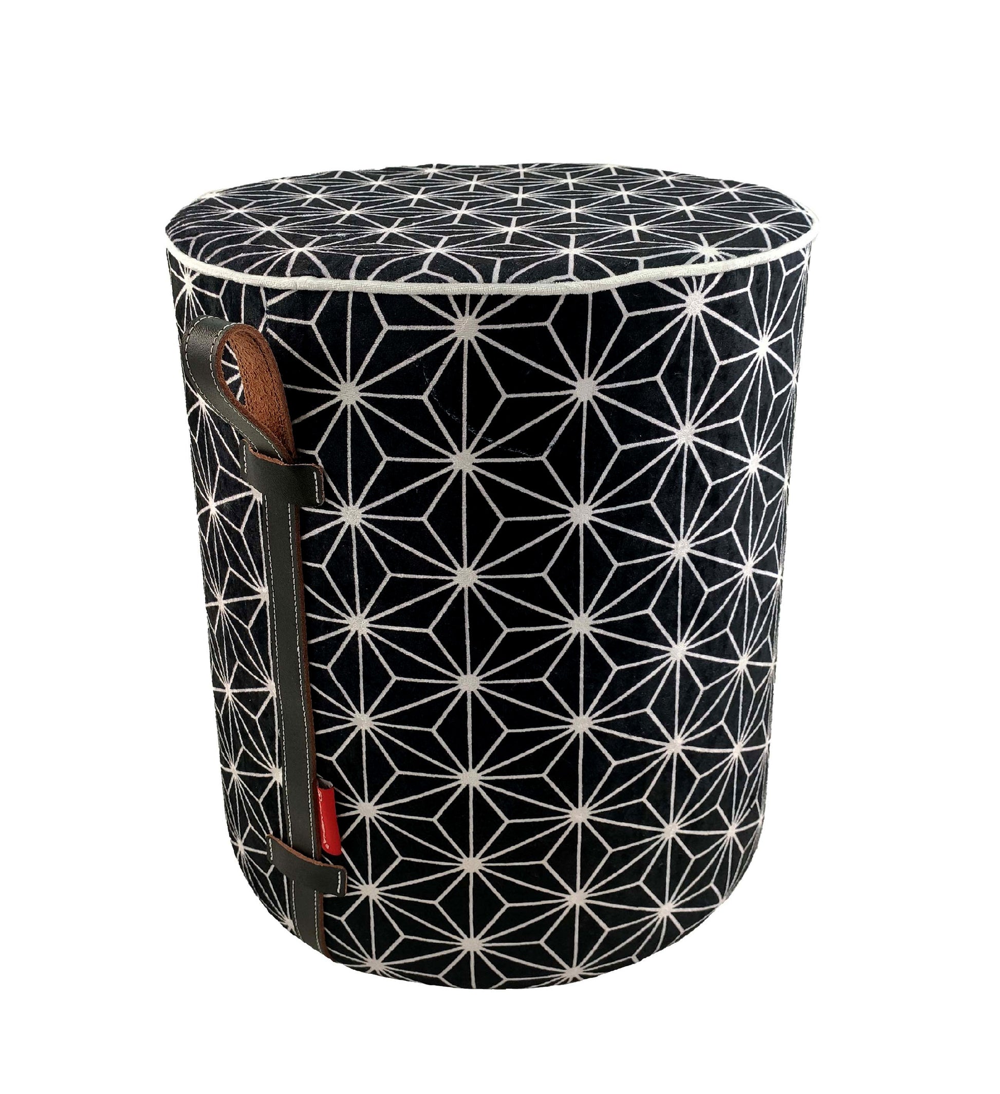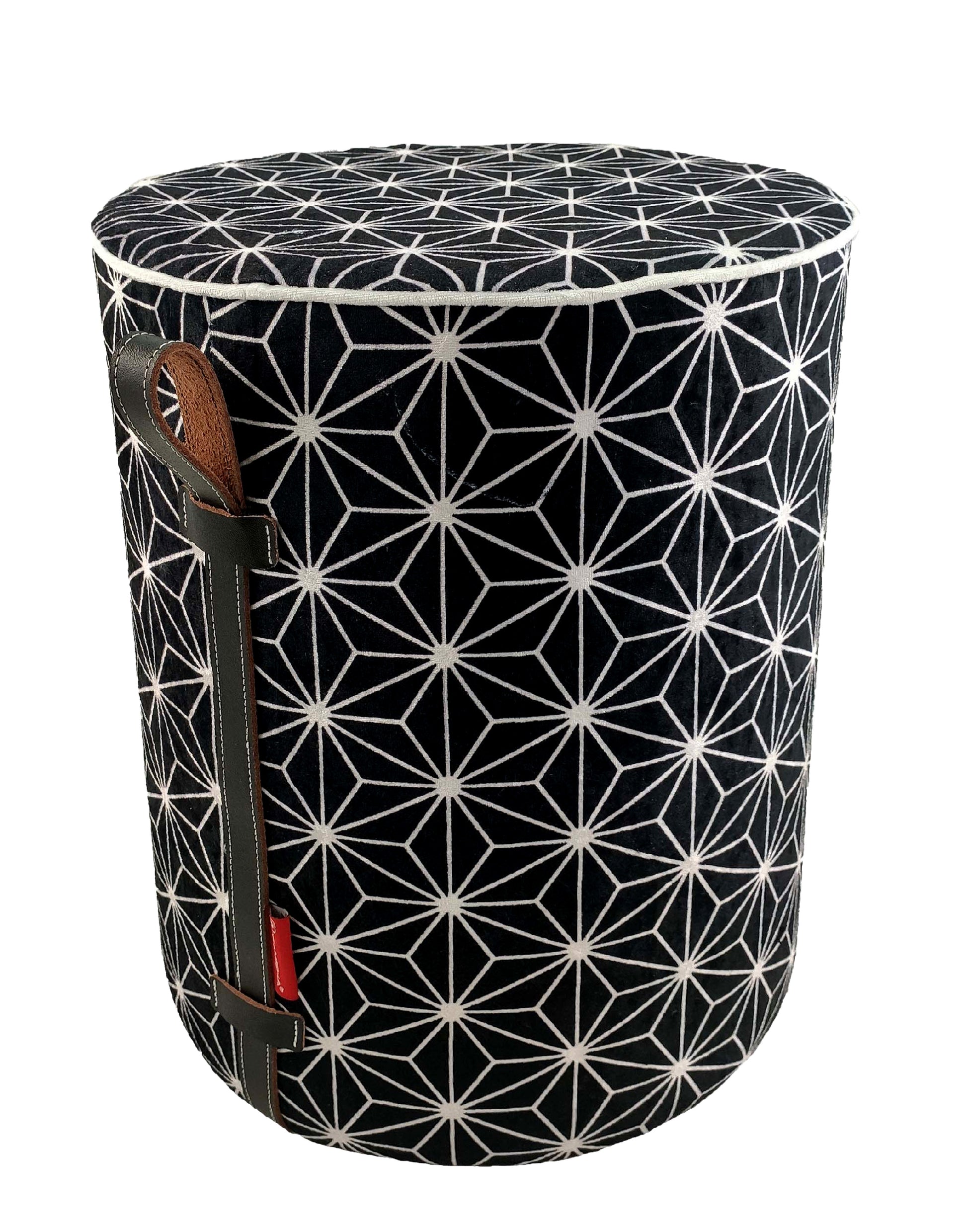 Printed Pedestal Pouf With Leather Handle PF-027