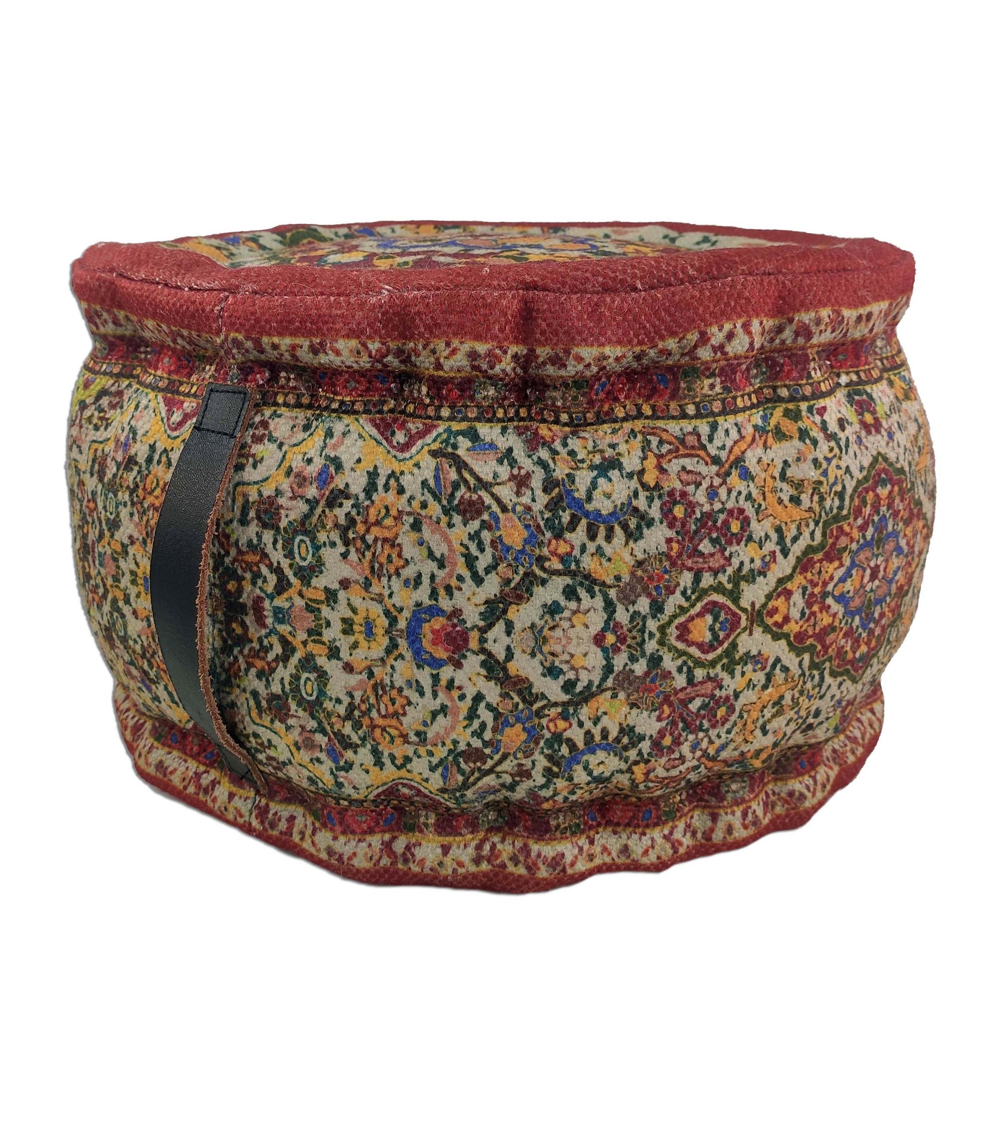 Printed Pedestal Multi Color Pouf With Leather Handle PF-029