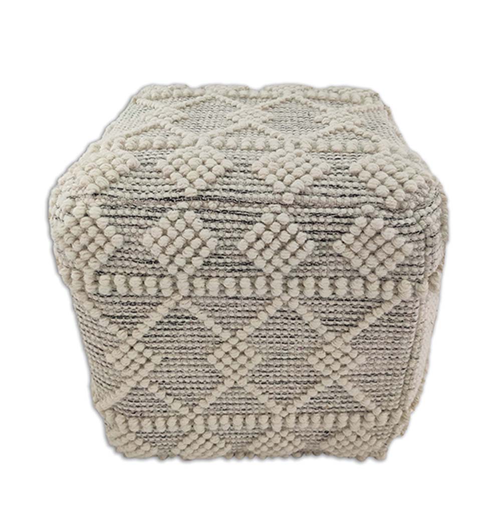 This unique hand-made pouf is crafted from a durable cotton weave, with a supportive Polystyrene solid cube inside. Perfect for any living space, this pouf provides a comfortable seating solution with the timeless look of natural woven material.