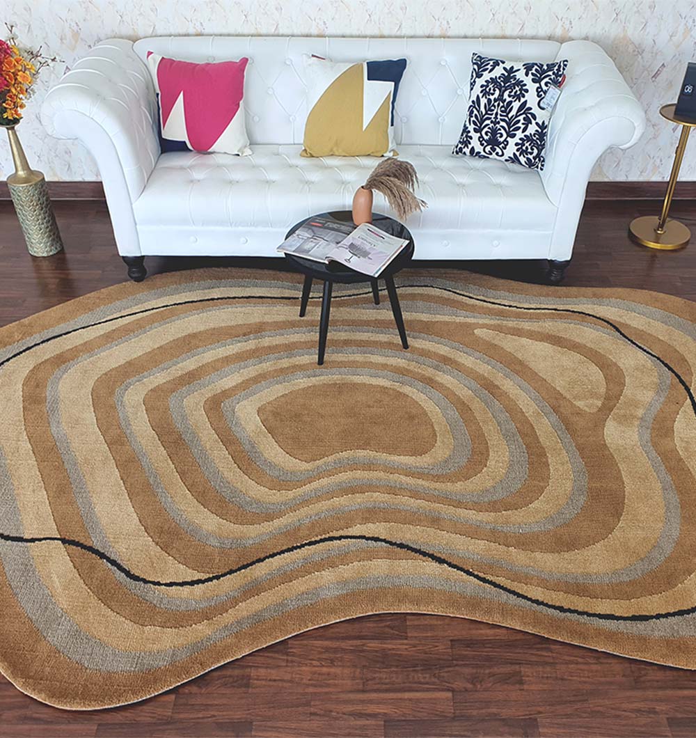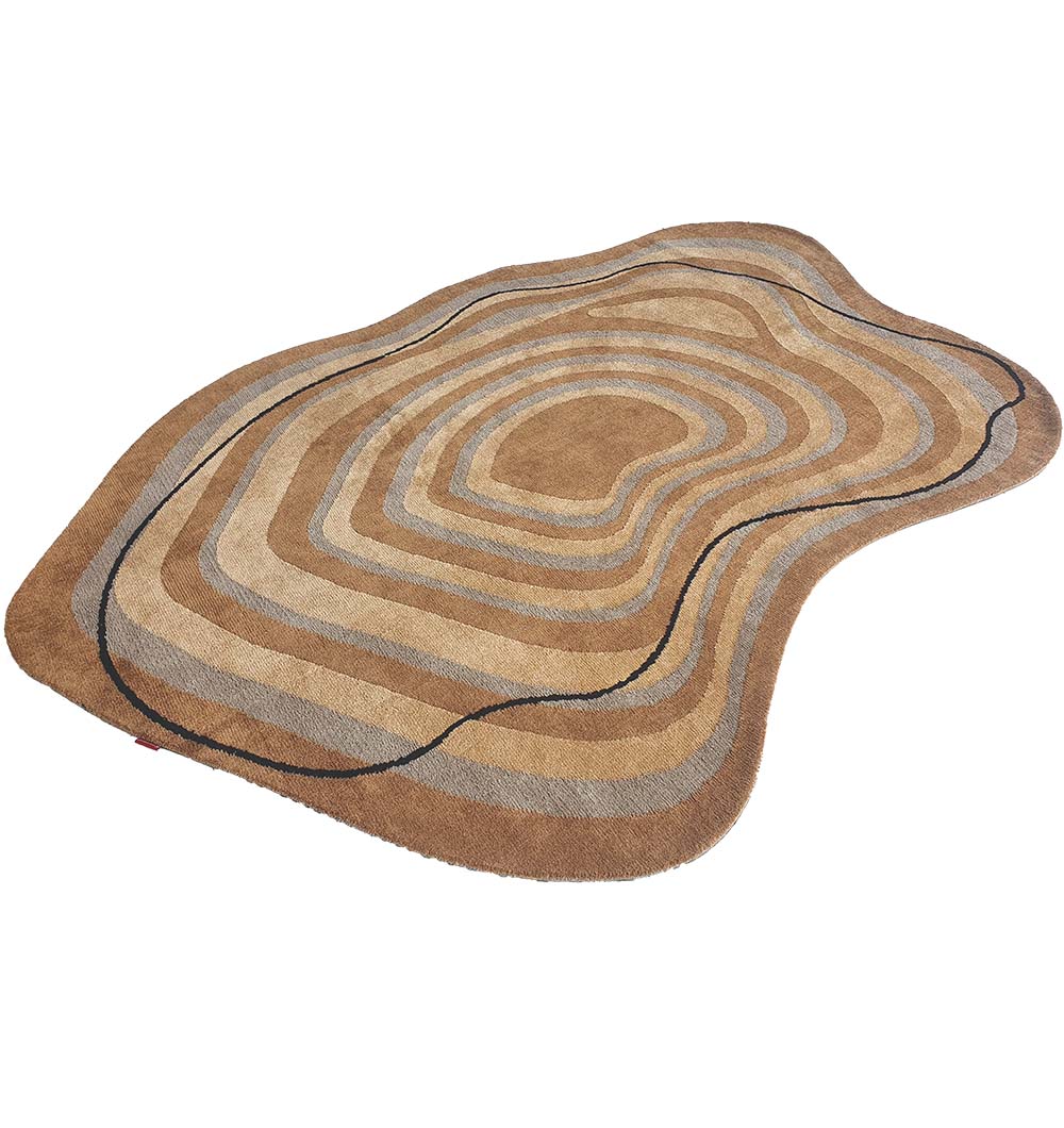 Warm earth tones flow in soft rings across this brown and beige rug, with a thin black outline that adds a clean, modern edge. The organic design creates an easy focal point without feeling loud, and the low-profile feel suits daily use. Made as a durable polyester and cotton blend, it’s a practical choice for busy spaces while still looking cozy and styled. Use it to soften hard floors, frame a coffee table, or add texture beside the bed. This irregular shape rug pairs well with wood, neutral sofas, and simple décor for a calm, curated look. A great modern abstract rug for updating your space fast.