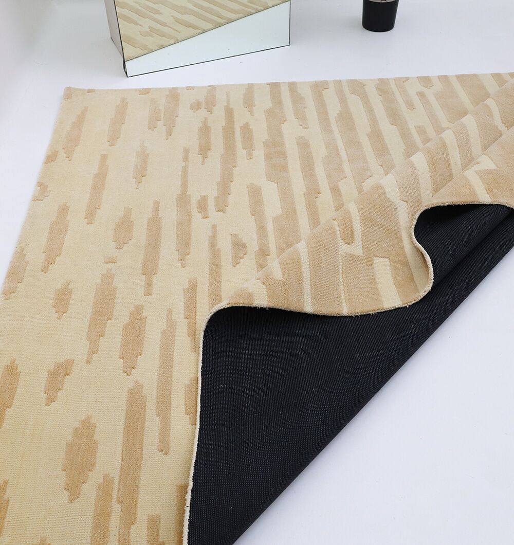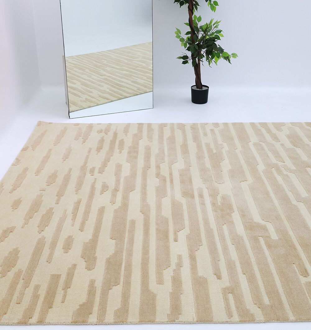 This rug blends warm sand beige with soft ivory in a calm, step-like pattern that adds detail without feeling busy. The machine-made build keeps the surface even and easy to care for, while the polyester and cotton mix feels smooth underfoot. It works well in spaces where you want a light look but still need something practical for daily use. Pair it with wood tones, white walls, or black accents for a clean finish. Use this beige area rug to brighten a room, keep it simple with a neutral modern rug, or place it as a machine-made rug for low-fuss style.