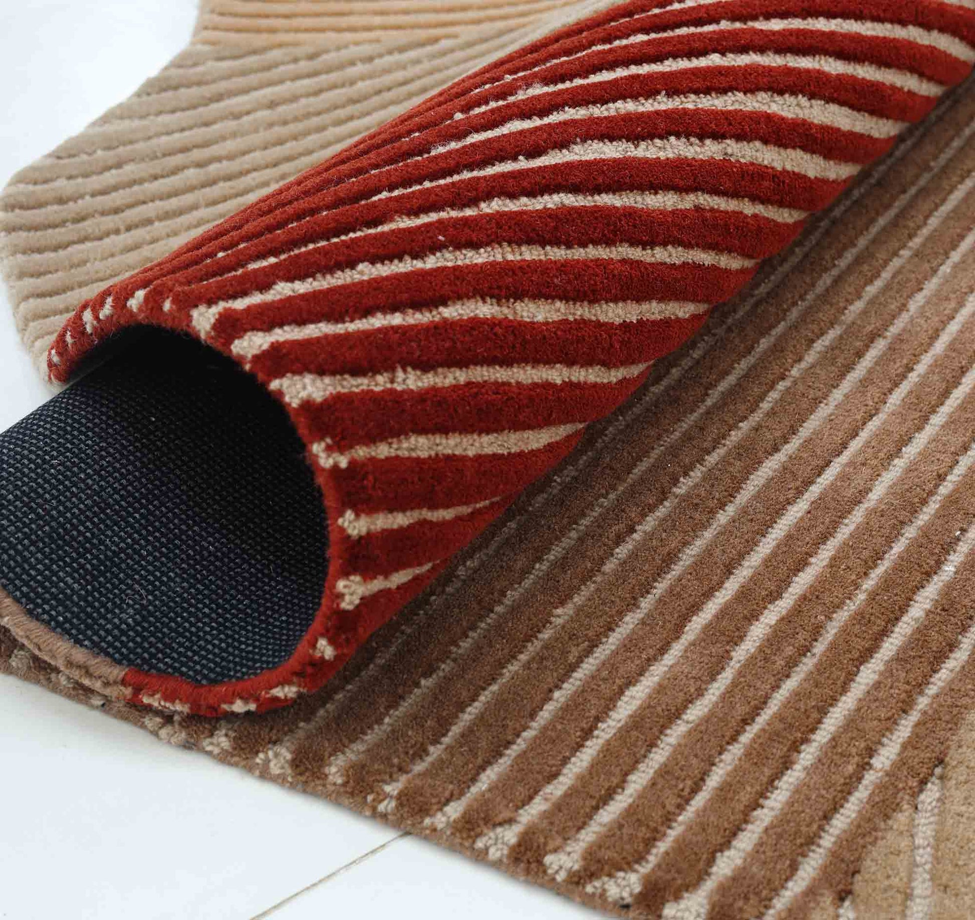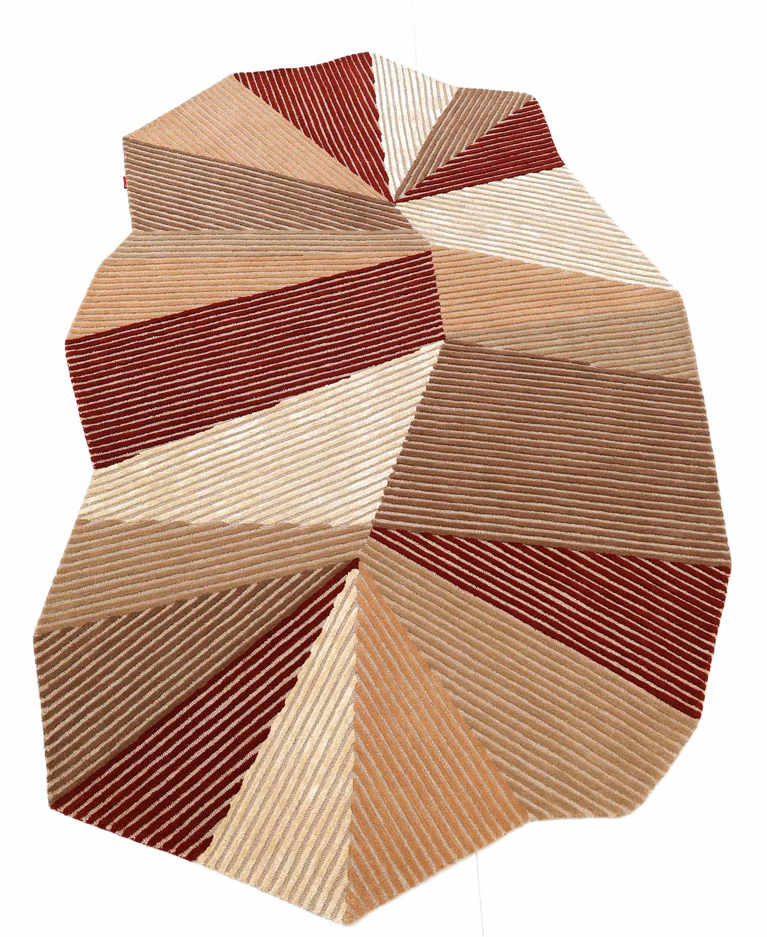 Warm beige, tan, cream, and rust blocks come together in a bold patchwork with fine ribbed lines that add texture and depth. This geometric area rug brings a modern look while still feeling cozy and easy to match with wood tones and neutral sofas. The soft blend gives a smooth touch, and the hand tufted rug finish adds a neat, raised feel you can see and feel. With its free-form outline, this irregular area rug makes a stylish statement without overpowering the room.