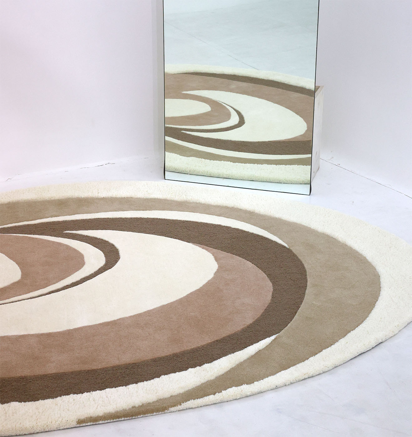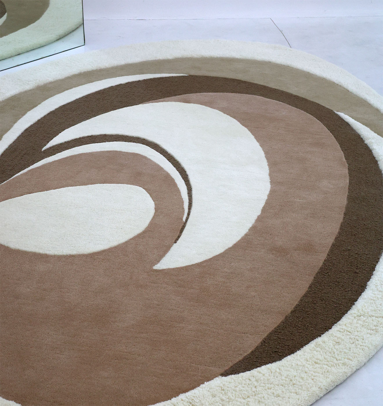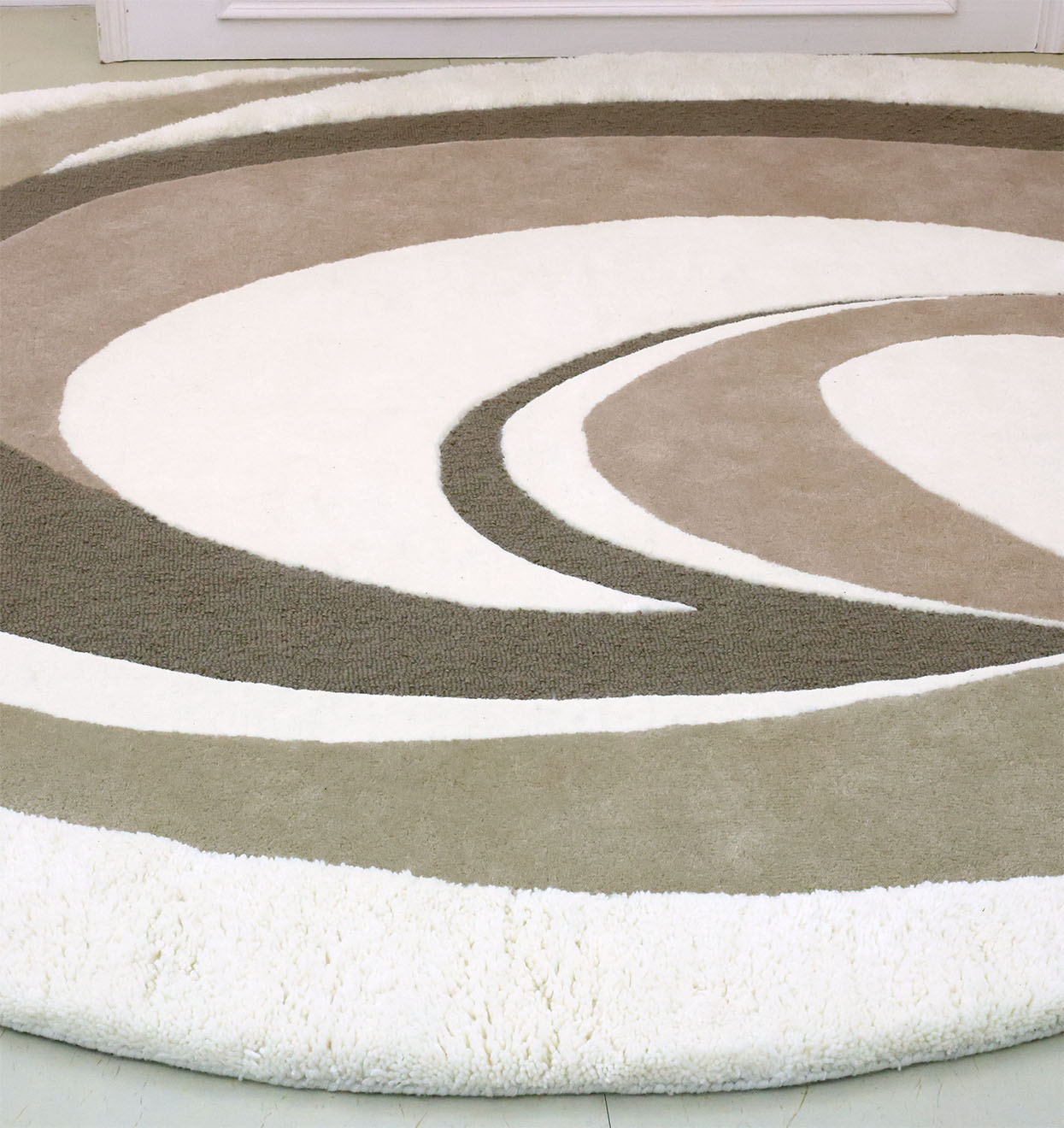 Warm, earthy tones meet a soft sculpted feel in this irregular rug with a bold swirl design. Layers of olive, taupe, mocha brown, and creamy ivory create a calm, modern look that works with many styles. The plush border adds extra comfort, while the Hand-Tufted finish gives clear shape and texture. Made with 80% Wool and 20% Cotton, this hand tufted wool rug feels cozy underfoot and helps define seating areas. Use it as an abstract area rug to add movement without loud color, or style it as a neutral irregular rug for an easy, balanced space.
