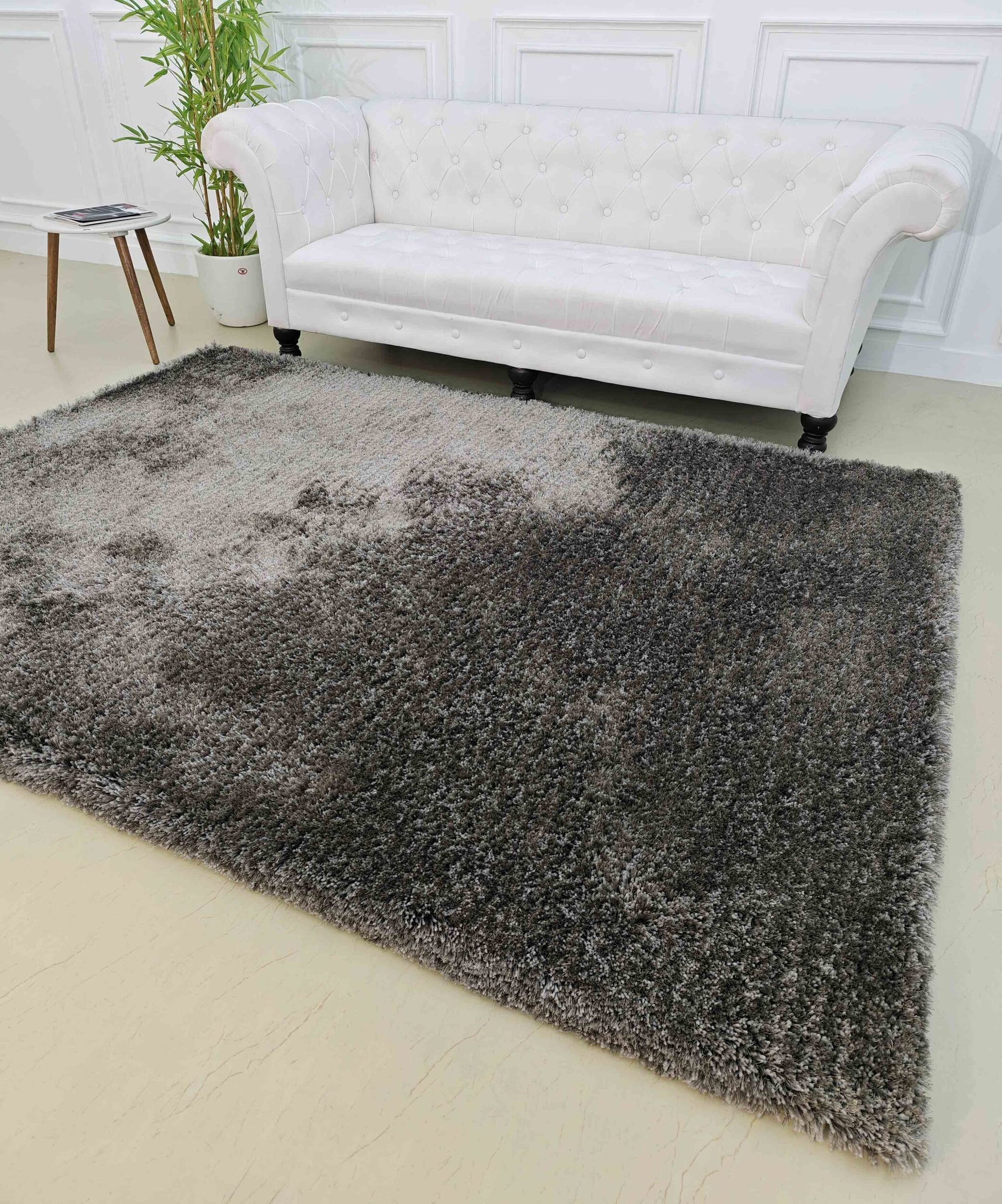 Smoky grey tones with darker charcoal shading give this rectangle shaggy rug a modern, grounded look that suits busy spaces. The plush pile feels soft underfoot, while the polyester and cotton blend helps it stay practical for everyday use. The cloudy finish adds depth without a sharp pattern, making it easy to pair with white furniture, warm wood, or black accents for a clean, balanced setup.