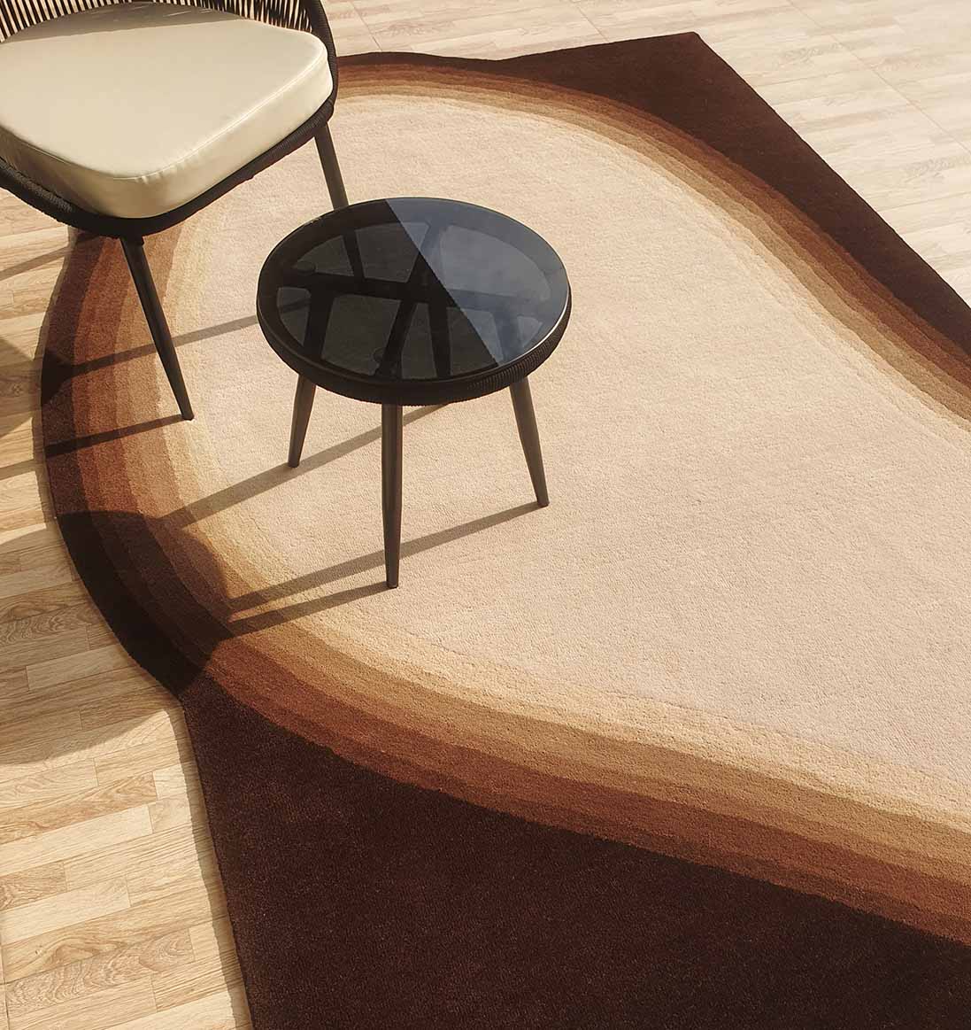 Soft layers of cream, sand, and caramel fade into deep chocolate edges, creating a cozy gradient that feels warm and modern. The sculpted outline makes this irregular shape rug a great way to add interest without a busy pattern. Hand-tufted for a plush feel, this hand tufted wool rug adds comfort underfoot and pairs easily with light or dark furniture. Use it as a neutral modern rug to ground a seating area, brighten a bedroom corner, or soften a quiet reading spot.