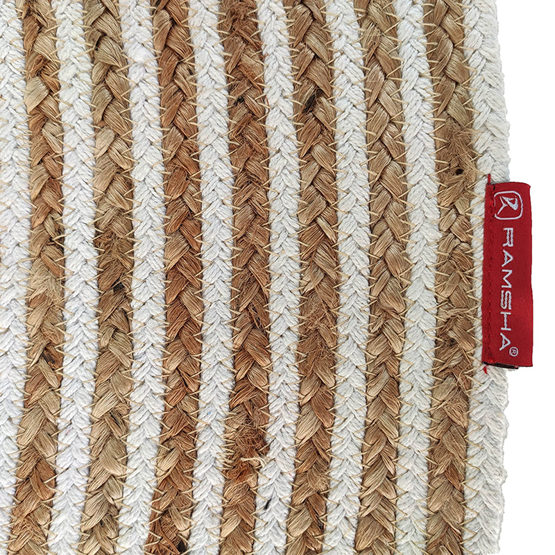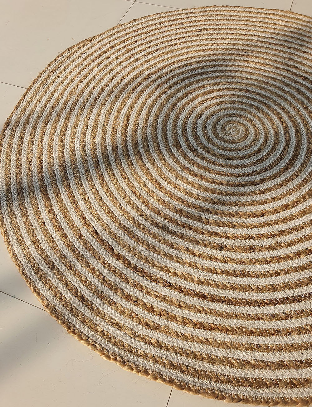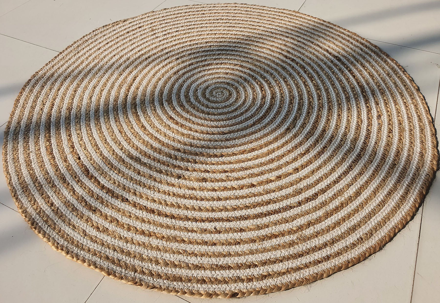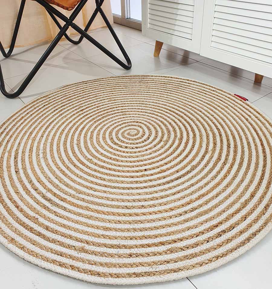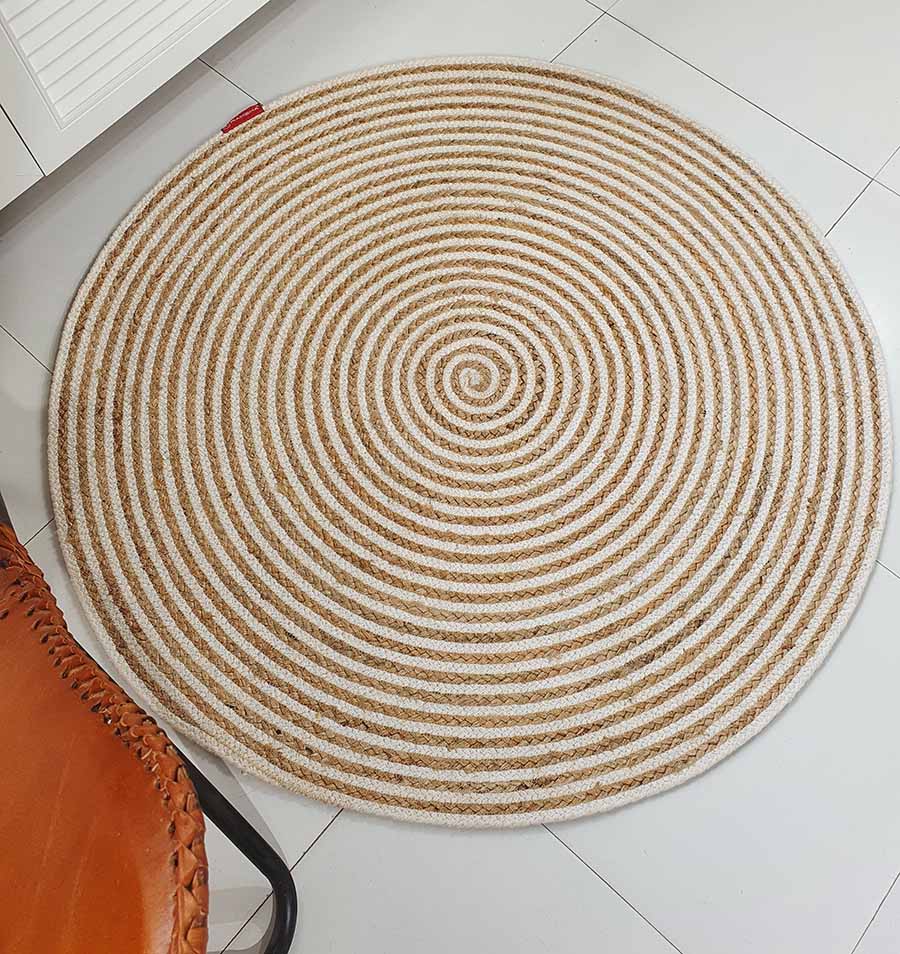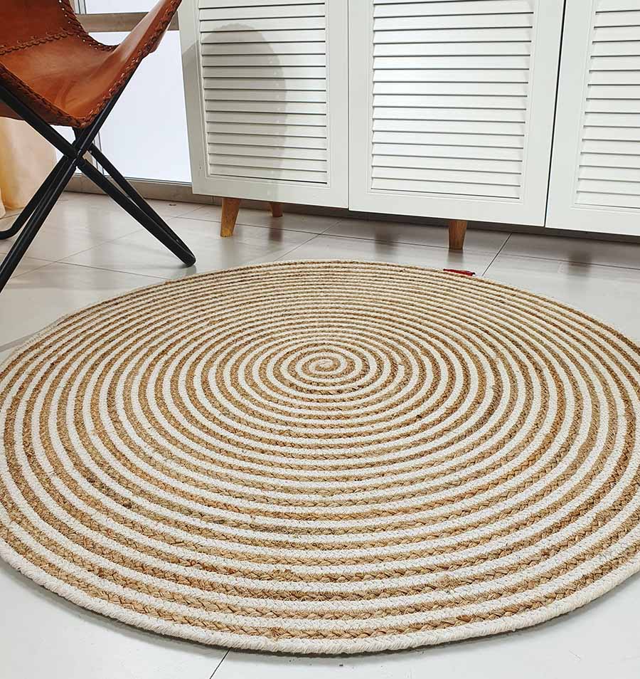 Handmade Natural & White Color Braided Jute Round Rug - BR 012