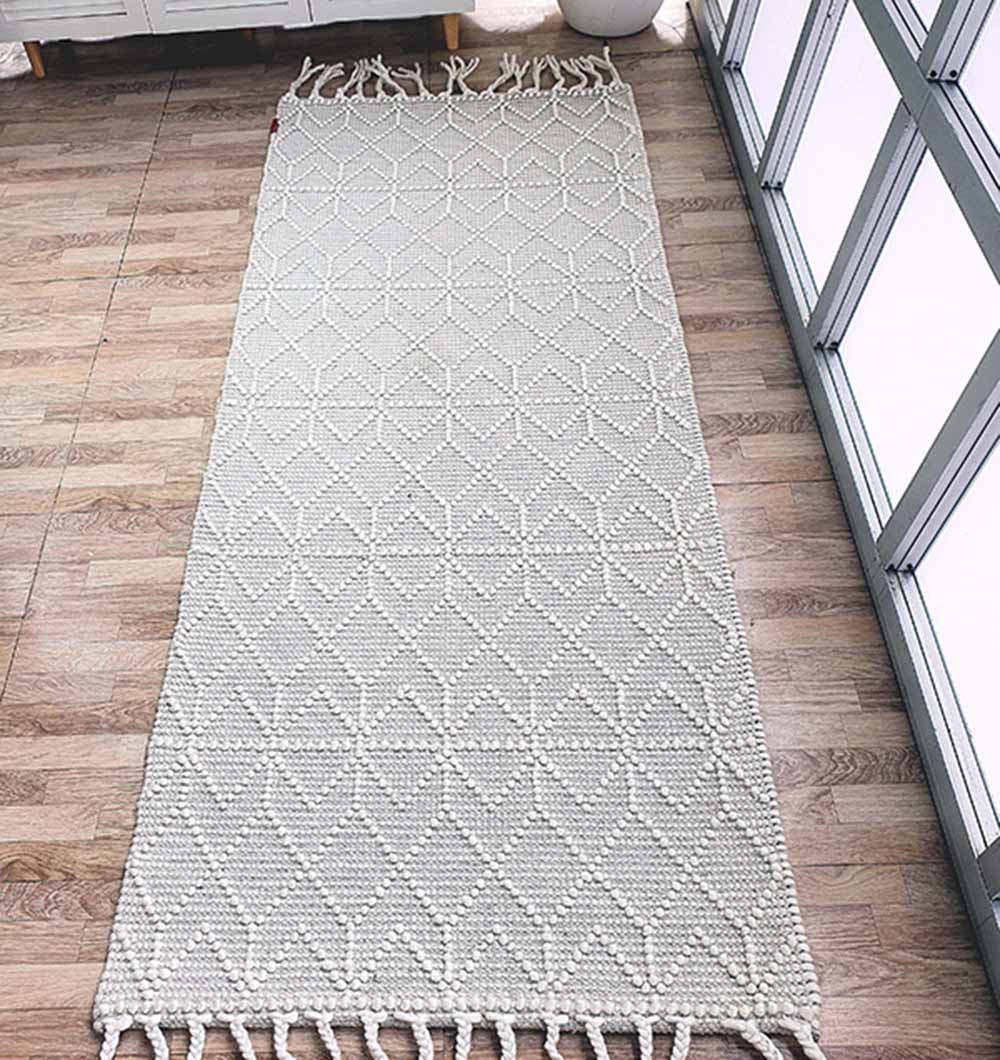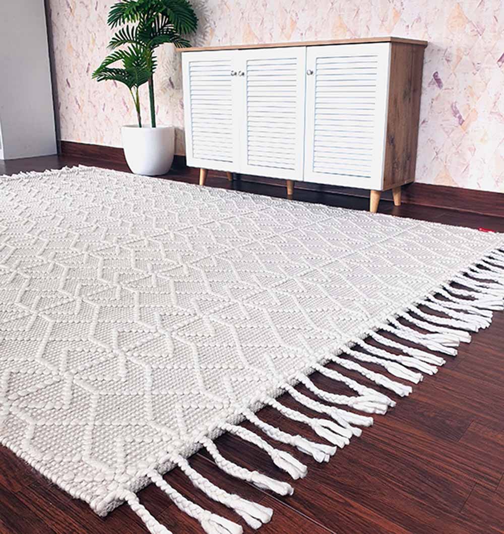 Handmade Woven Rug Natural White Color Fringes Decor Rug SRN-007