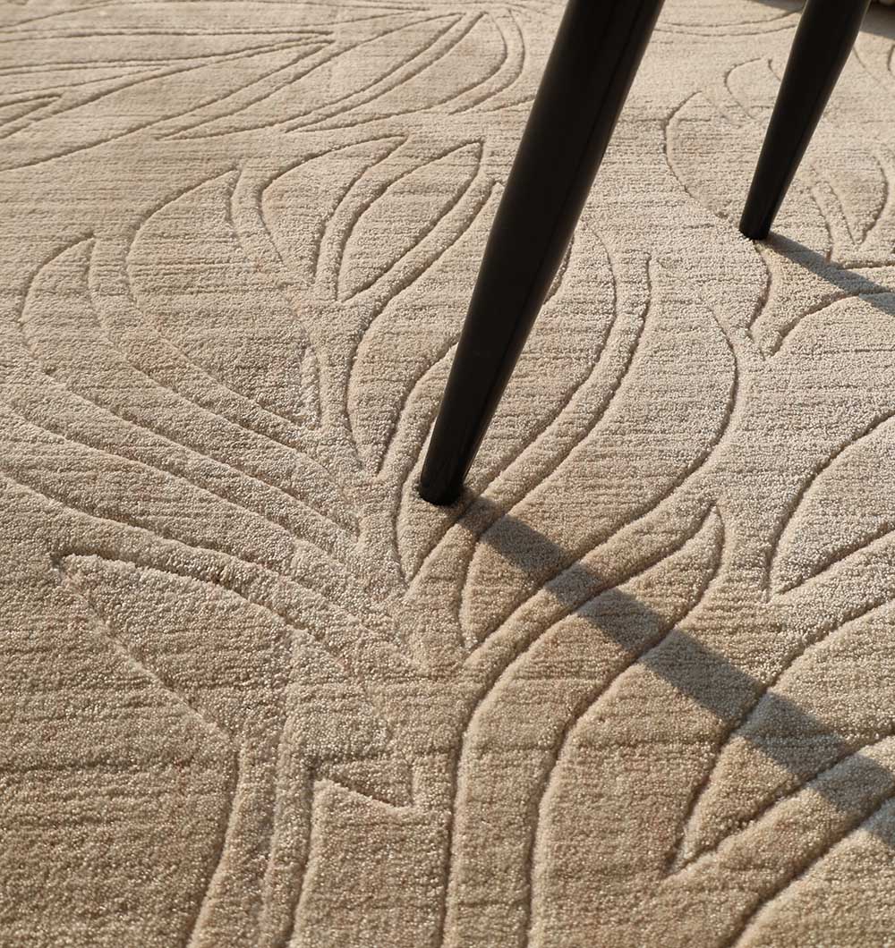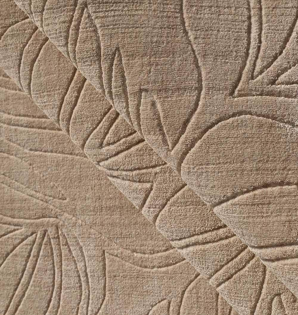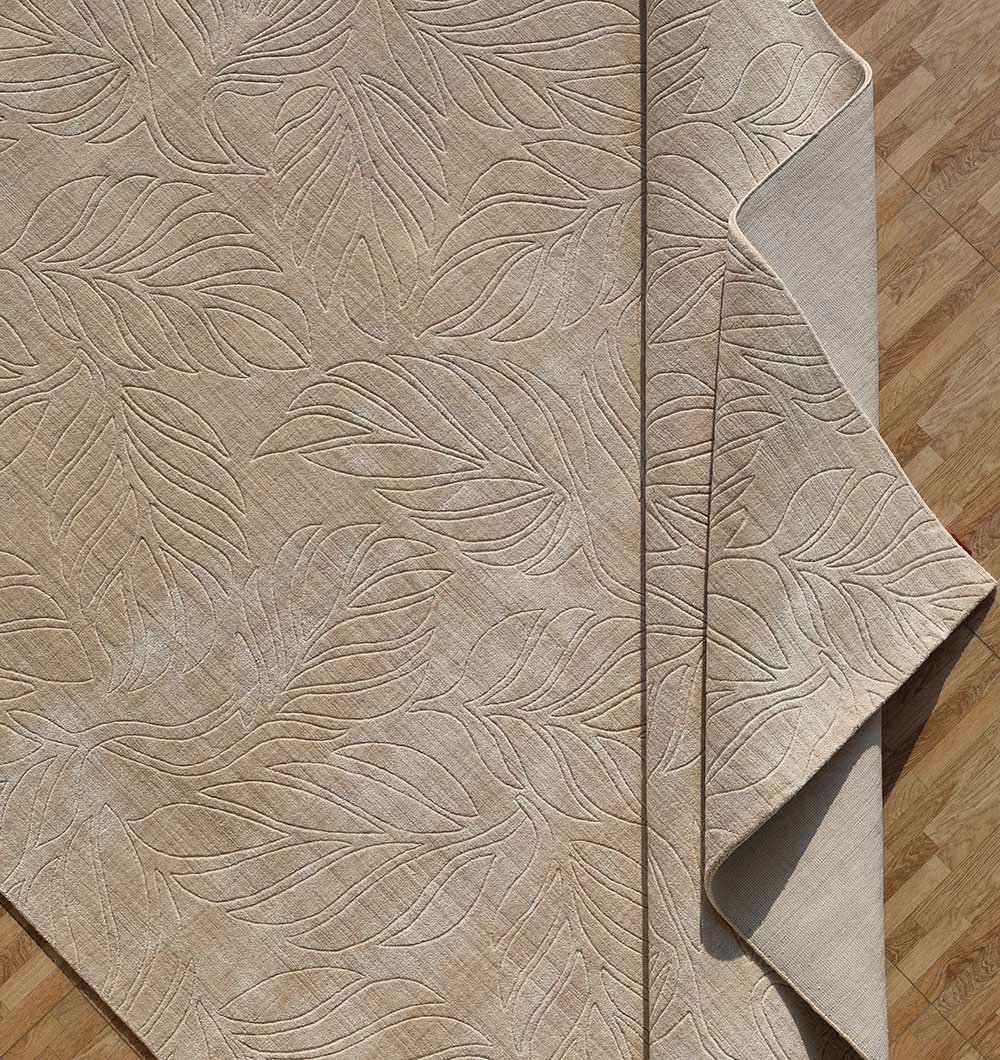 Neutral beige with a carved leaf pattern adds texture without making the room feel busy. This loom knotted rug is made with polyester Thai yarn and cotton for a durable, easy-care finish that suits everyday spaces. The raised leaf outlines create a soft, natural look that pairs well with wood furniture, black accents, and light walls. Use this beige textured rug to bring depth to a simple layout, and let this modern area rug keep the space calm, clean, and pulled together.