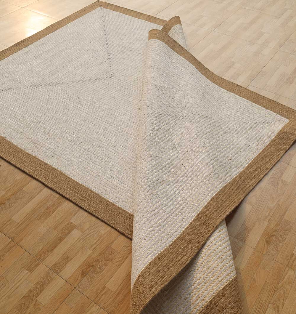 A clean two tone design gives this rug a fresh and balanced look. The soft off white center contrasts with the natural beige jute border, creating subtle definition without heavy patterns. Crafted from pure jute choti and jute rope, the braided construction offers strength and texture for everyday use. Its circular form makes this round jute rug ideal for anchoring seating areas or adding shape to open spaces. The firm weave ensures this braided jute rug maintains structure while highlighting the organic character of natural fibers. Simple and versatile, this two tone jute rug blends easily with neutral, coastal, or earthy interiors.