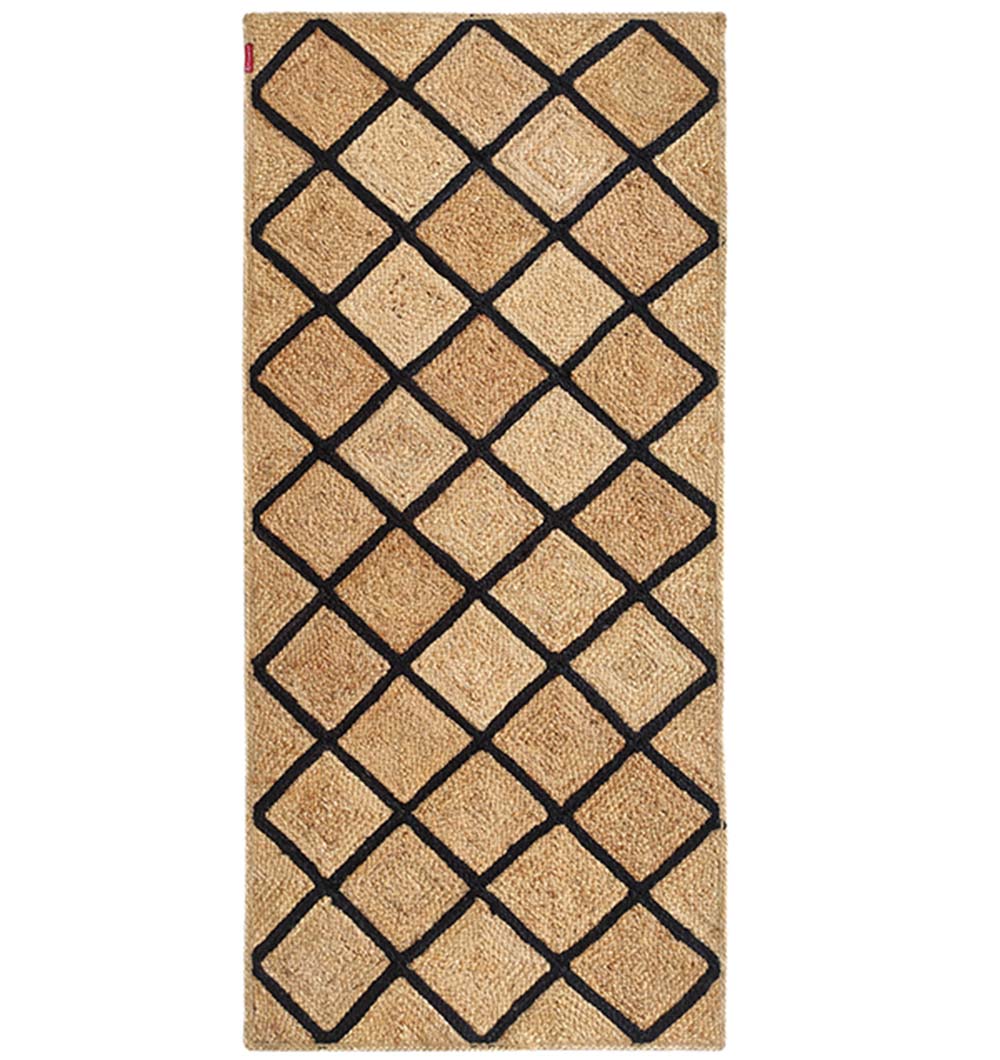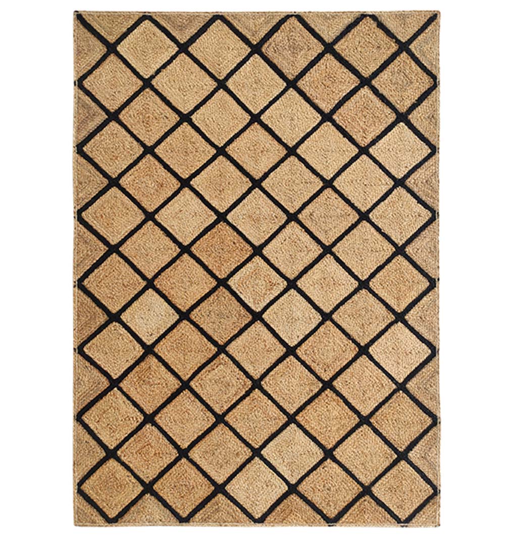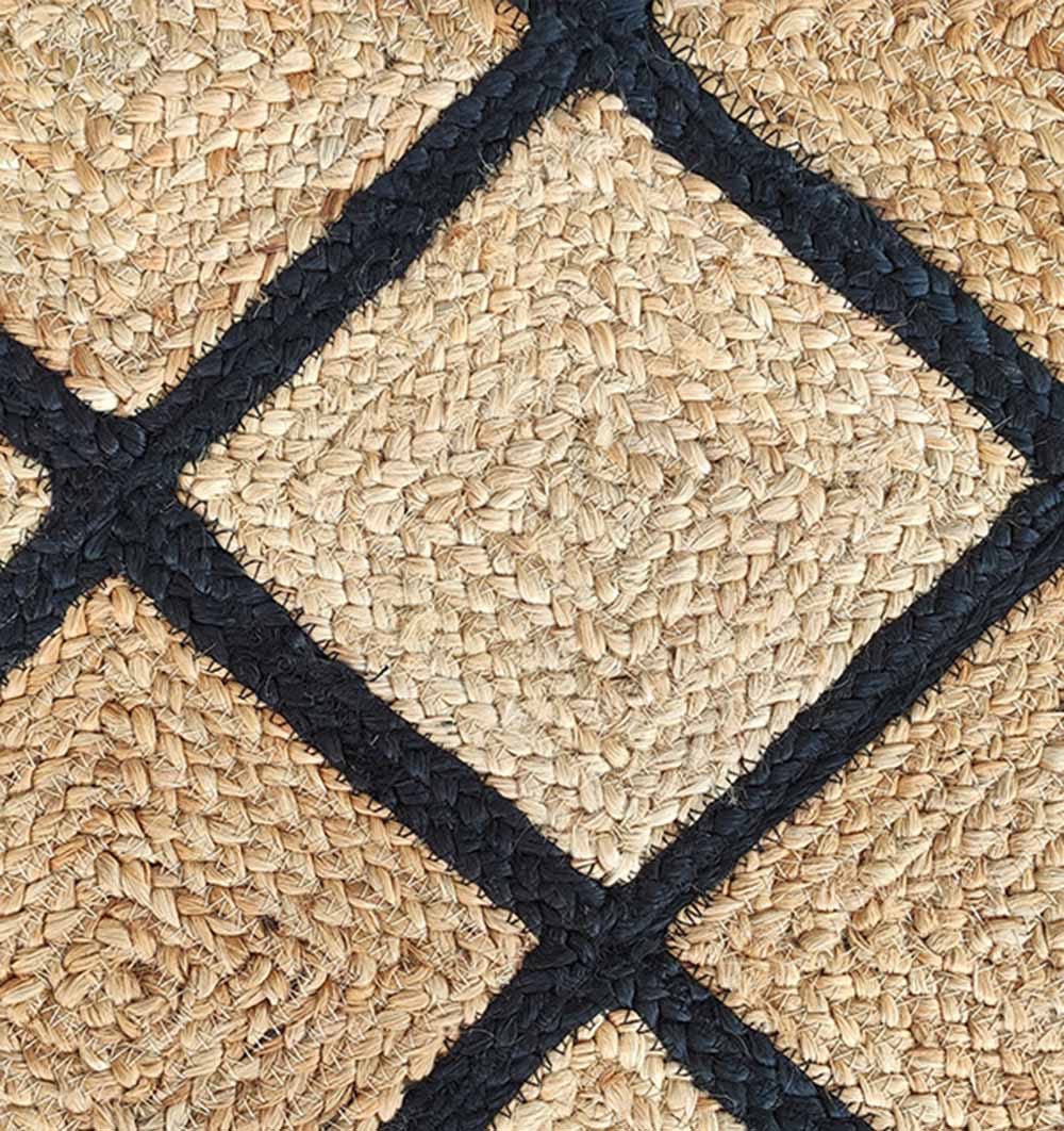 Sharp black diamond lines create a striking contrast against the warm natural beige base of this rectangle rug. Made from pure jute, it features a firm braided texture that adds durability and an earthy touch to your space. The bold pattern brings structure and movement while still keeping a natural feel. Its clean geometric layout pairs well with modern furniture and minimal interiors. This diamond jute rug offers visual interest without heavy colors. Designed for everyday use, it works beautifully as a stylish geometric jute rug and a reliable braided jute rug that blends texture with strong design.