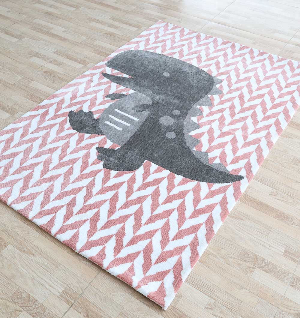 Kids Dinosaur Rug - Pink Grey Playroom Area Carpet - KD 007 (120x180 cm)