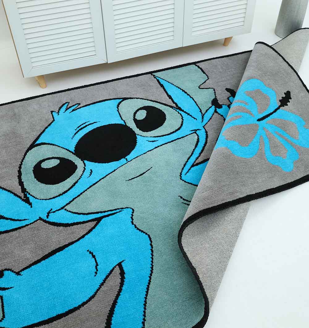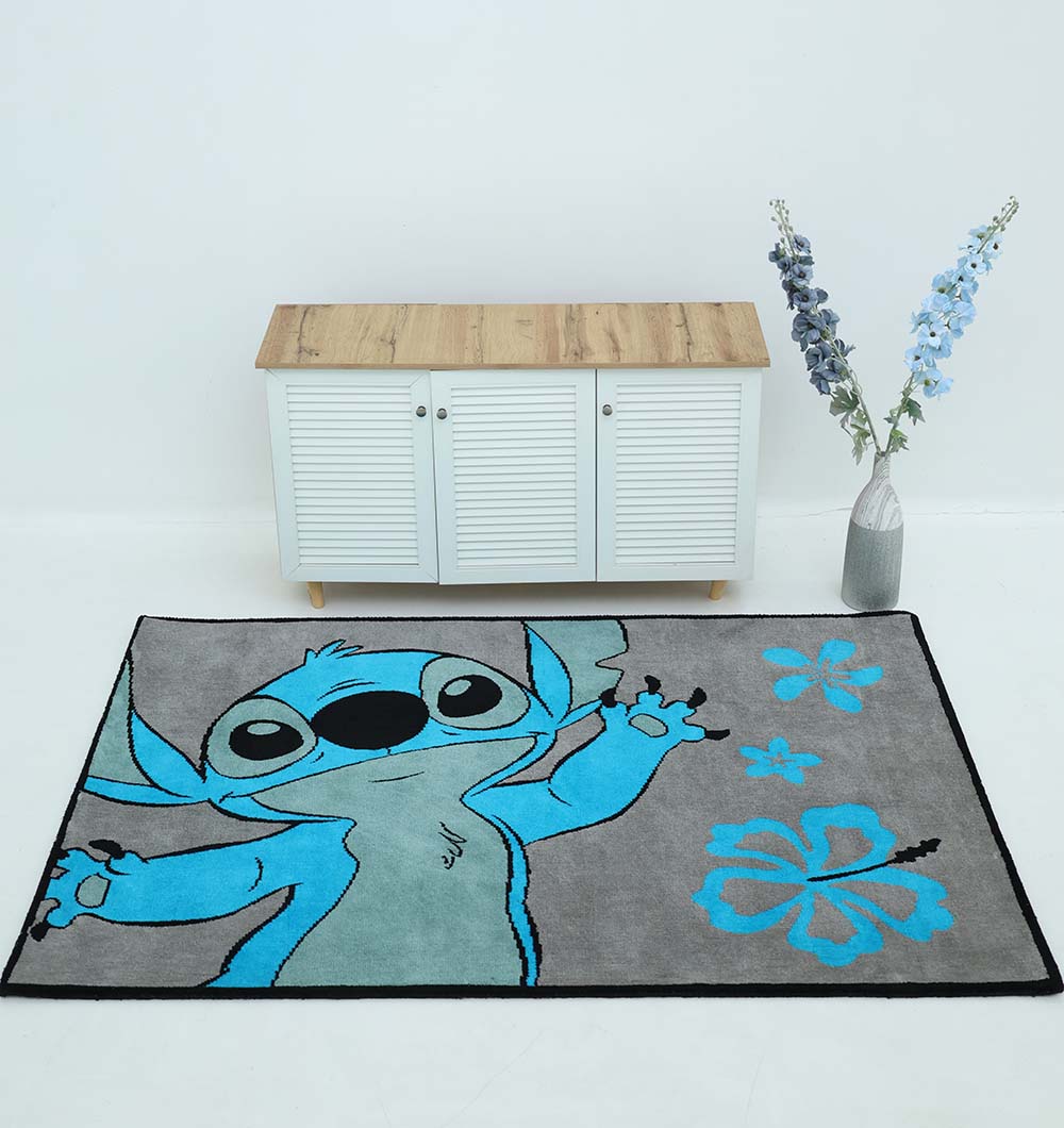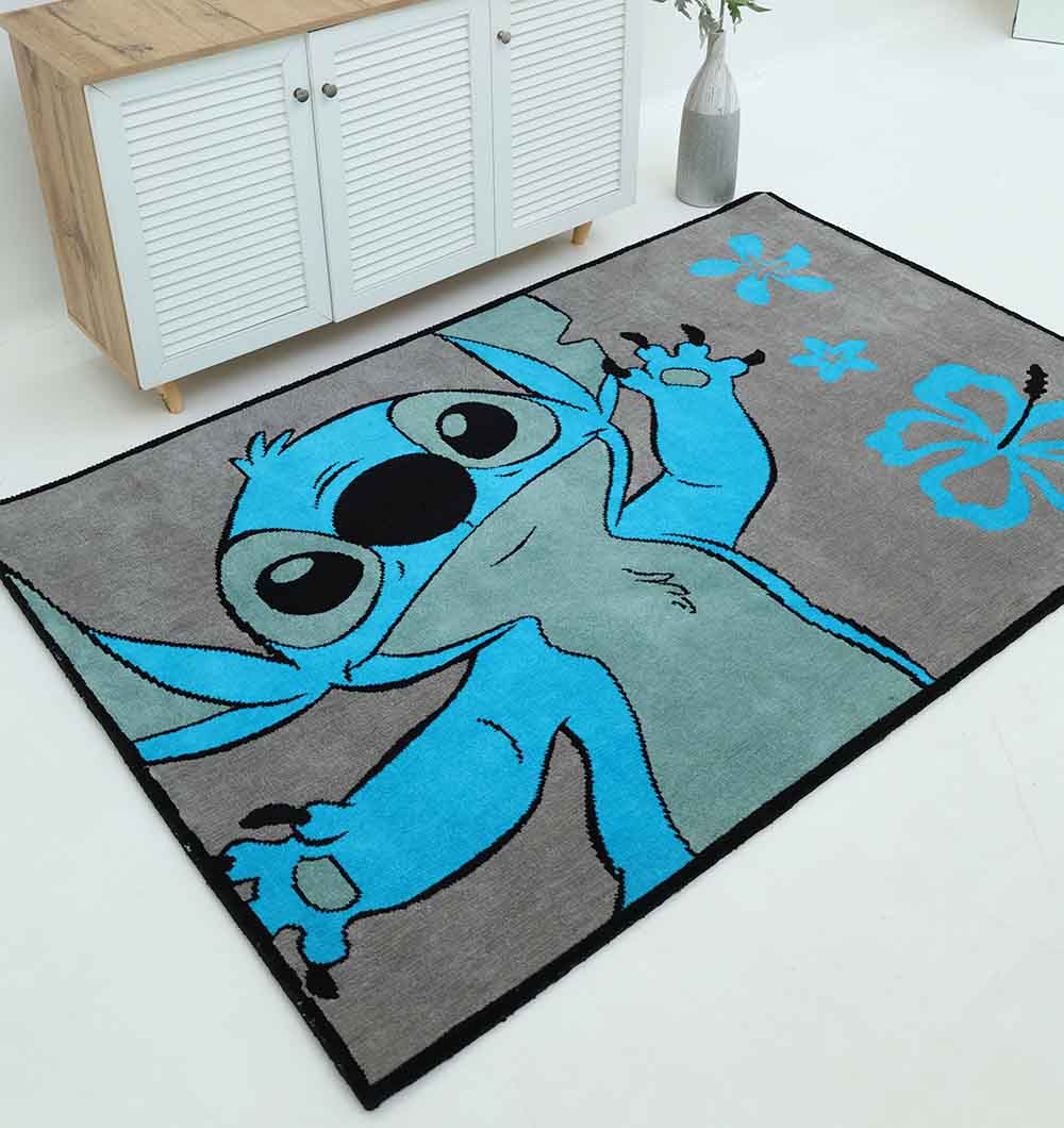 Grey with bright blue character and flower details makes this rectangle rug a fun focal piece for a kid-friendly space. The soft surface is comfortable underfoot, and the polyester keeps it practical for everyday use. This kid's character rug is easy to match with white furniture and simple bedding, while the bold design adds color without needing extra decor. Use it as a cartoon area rug to define a play corner or reading spot or place this rectangle kids rug beside the bed for a soft landing.