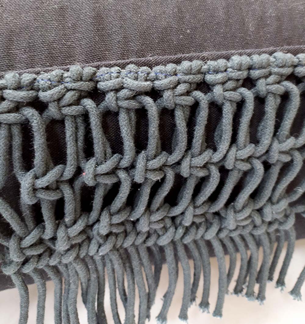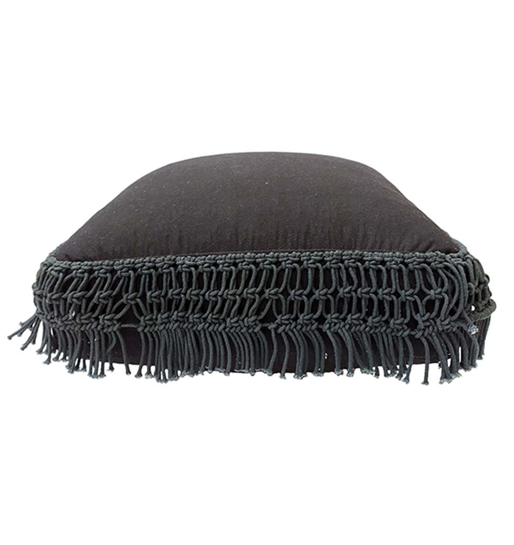 This Black Cotton Pouf With Fringes is a stylish accent piece for any living space. Its robust cotton cover and filling of thermocol beans provide a sturdy and comfortable seating solution. The fringes add an inviting texture to the overall look.