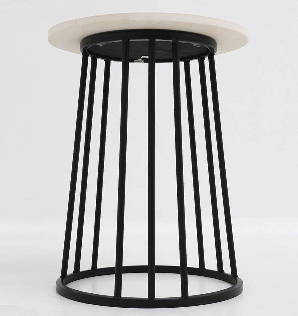 Keep your space light and modern with this round marble side table in white gloss. The smooth marble top shows soft natural veining and sits on a slim black metal base with an open ring bottom for an airy look. It’s an easy fit next to a sofa, bed, or reading chair for a drink, phone, or small décor. Made from 70% marble and 30% iron, this white marble side table blends well with neutral and contemporary rooms.