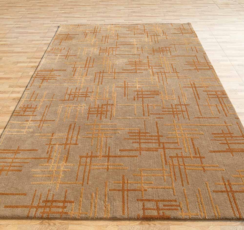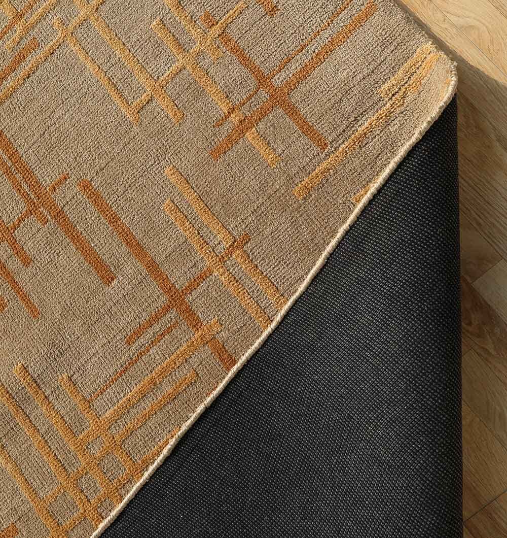 A warm taupe base is layered with rust and golden linework in a scattered crosshatch pattern, giving this rug a modern, textured look without feeling loud. The small linear details help hide everyday dust while adding depth from a distance. Machine-made from polyester with cotton, it has a smooth feel, lays flat, and is easy to care for in busy homes. Pair it with wood furniture, black accents, or tan seating for a pulled-together space. Use it as an abstract line rug, keep it grounded with a brown modern rug, and enjoy the practicality of a machine-made rug.
