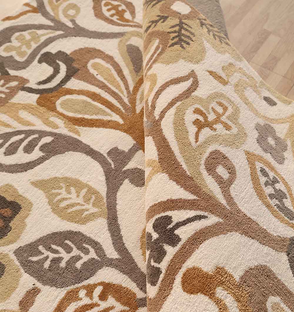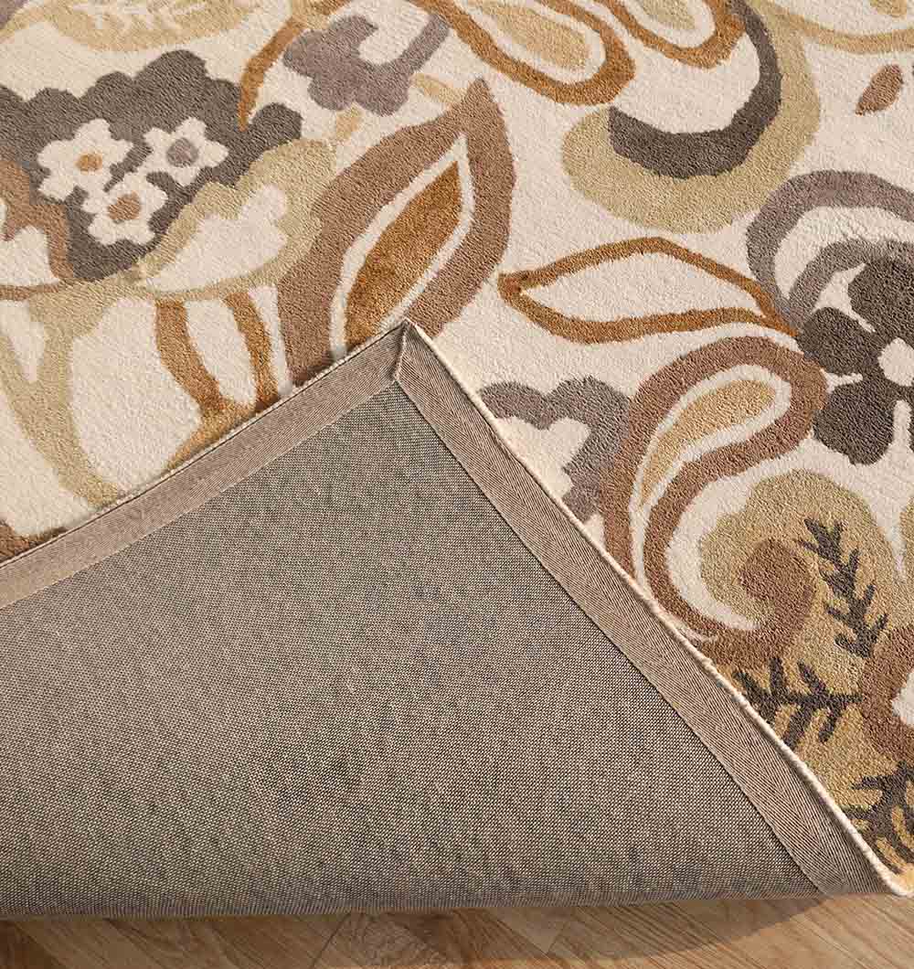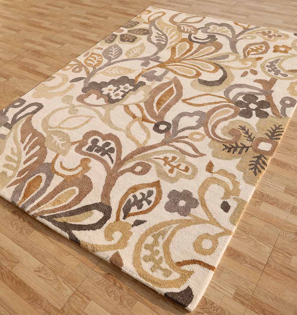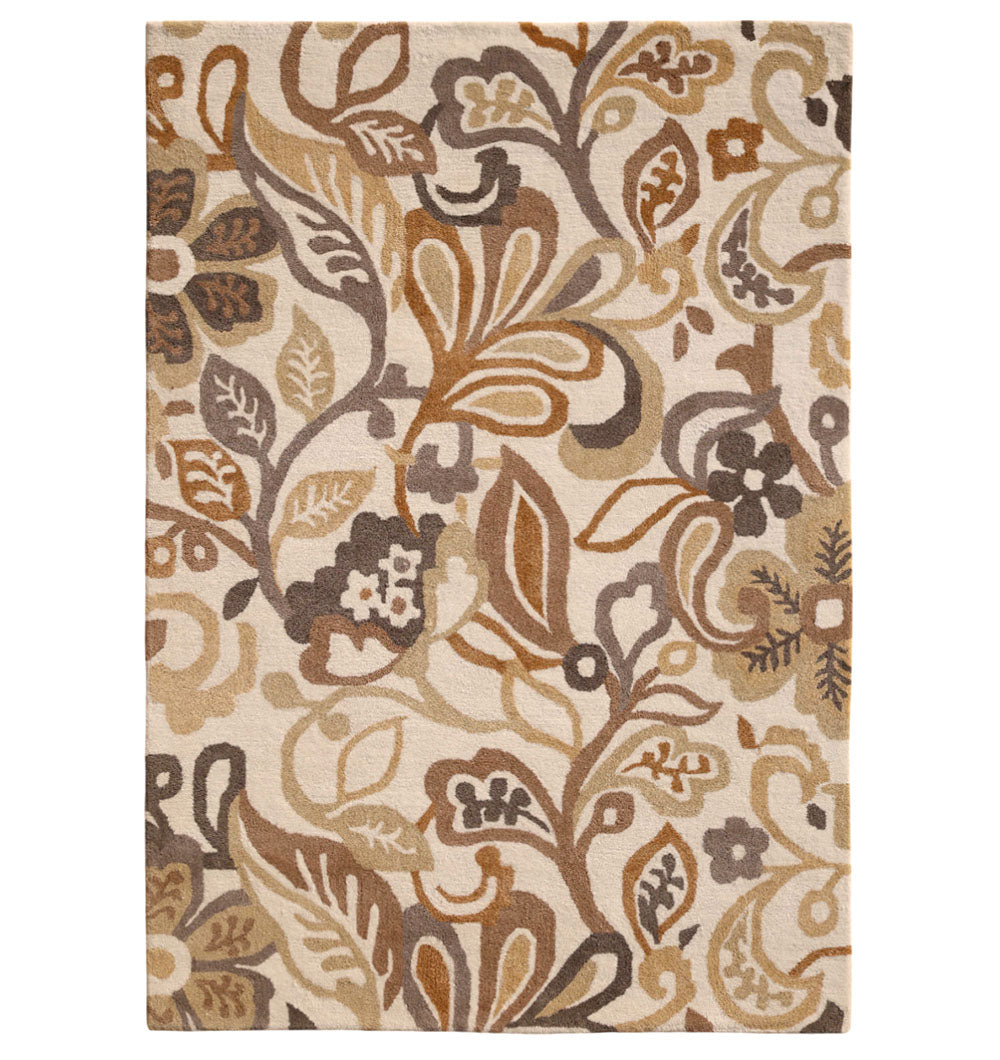 Soft curves and leafy vines give this rectangular rug a relaxed, lived-in look. The cream base is layered with taupe, tan, warm brown, and muted gold for a cozy mix that suits both light and dark furniture. Handtufted with a smooth pile, it feels comfortable underfoot and is easy to place in everyday spaces. Use it as a hand tufted rug under a coffee table, or let it brighten a reading corner as a floral area rug. The polyester and cotton blend helps it hold its shape while staying practical for regular use as a polyester cotton rug.