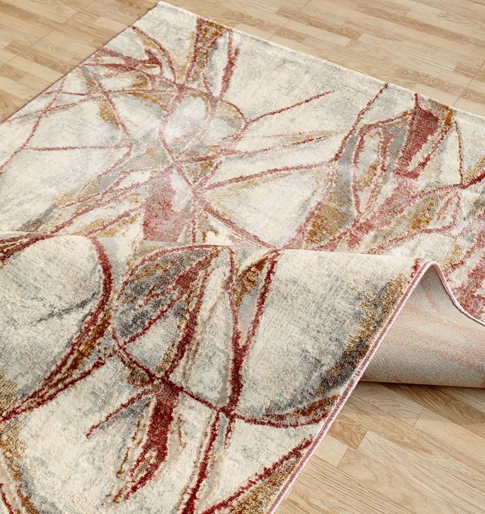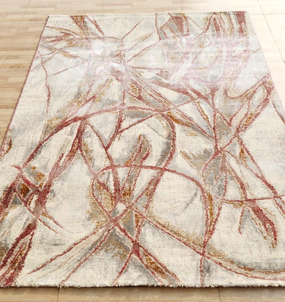 Abstract brushstrokes in terracotta and ochre dance across a neutral cream backdrop in this modern abstract rug. The fluid, sweeping lines create a sense of movement and contemporary flair, perfect for updating a minimalist space. Since it is one of our high-quality machine-made rugs, it offers a plush, durable pile that maintains its artistic detail over time. Pure polyester fibers provide a soft texture underfoot and a subtle sheen that catches the light beautifully. This rectangle area rug features a clean-edge finish without fringes, emphasizing its sleek and updated aesthetic. Its stain-resistant properties and resilient construction make it as functional as it is visually striking for daily life.