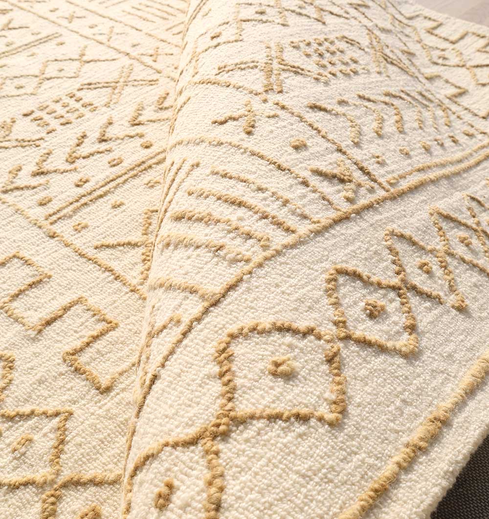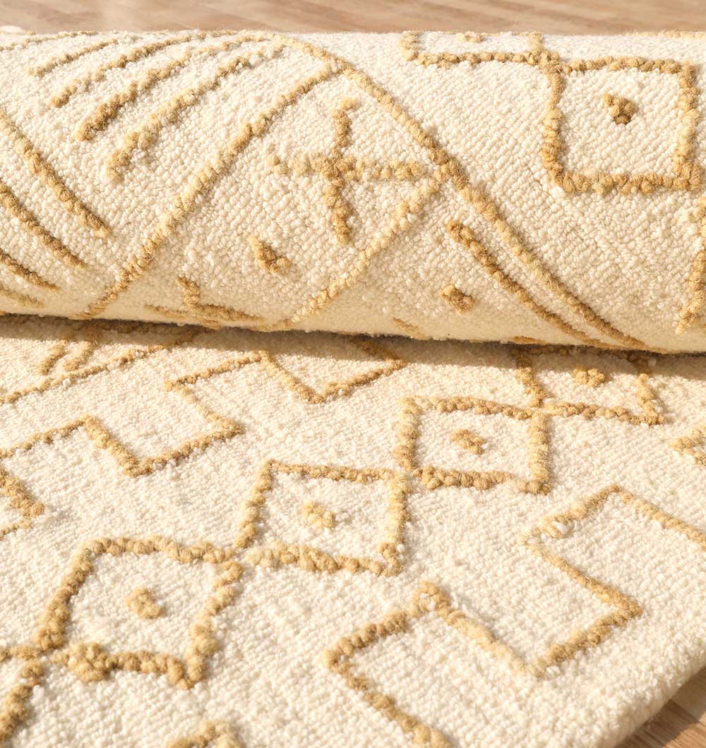 Bring warm texture to your space with this cream base rug detailed in soft beige tribal lines and a bold border. The raised pattern adds a gentle feel underfoot and gives the room a cozy, crafted look without feeling busy. This cream wool rug pairs well with light woods, natural fabrics, and neutral sofas. Use it as a tribal area rug to anchor seating, frame a bed, or soften a quiet reading corner. A classic handtufted rug that blends easily with modern, boho, and rustic decor.