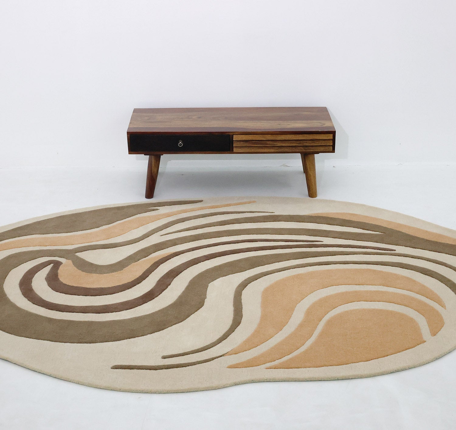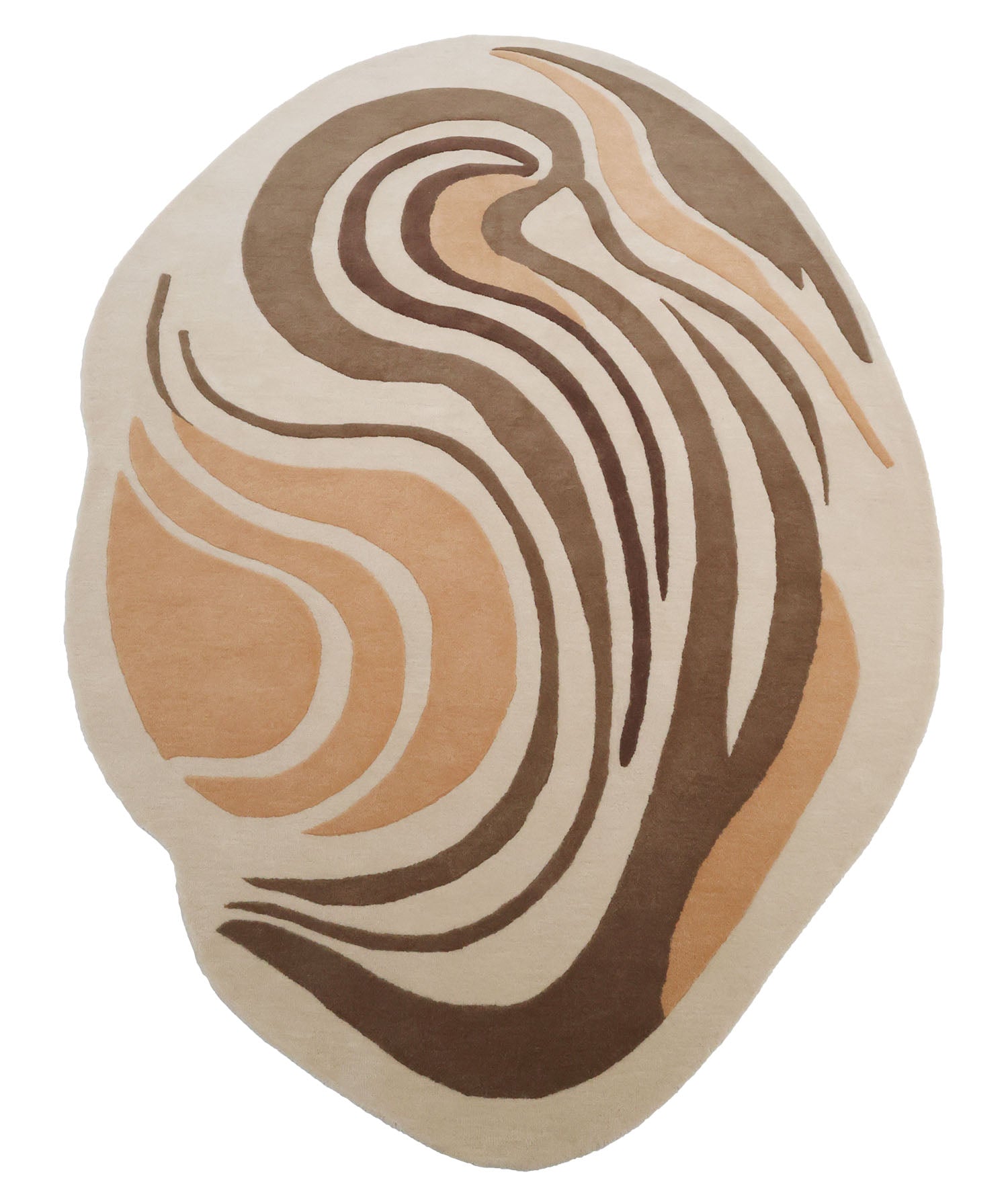 Warm, flowing lines bring movement to this cream base rug, with caramel and deep brown swirls that feel calm and modern. The soft curves add an artful look while keeping the space cozy and easy to style. Use it as an irregular shape rug to break up straight furniture lines, or layer it into a clean palette as a modern abstract rug. Hand-tufted with wool and cotton, this hand tufted wool rug feels plush underfoot and adds gentle texture without being loud.
